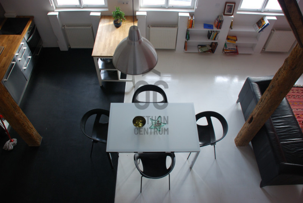 2 szintes, loft jellegű tetőtéri lakás.