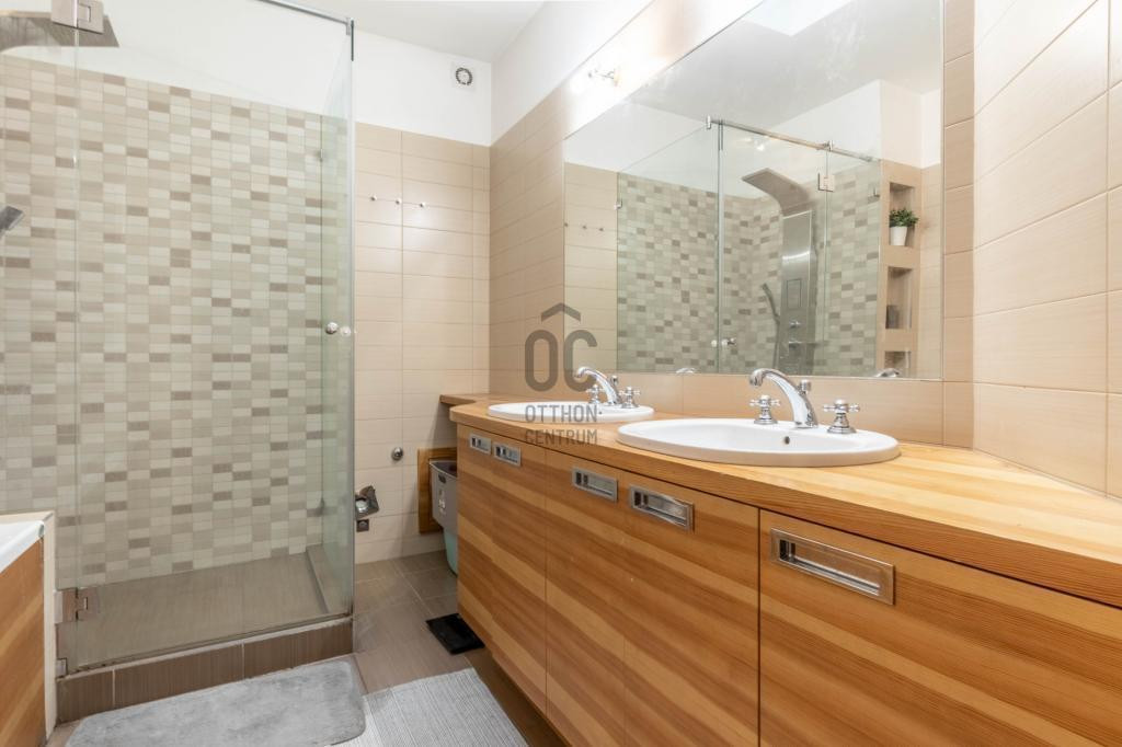 - A fürdőben 2 db mosdó, Wellis kád és épített zuhanyzó - Wellis fali zuhanypanel található.