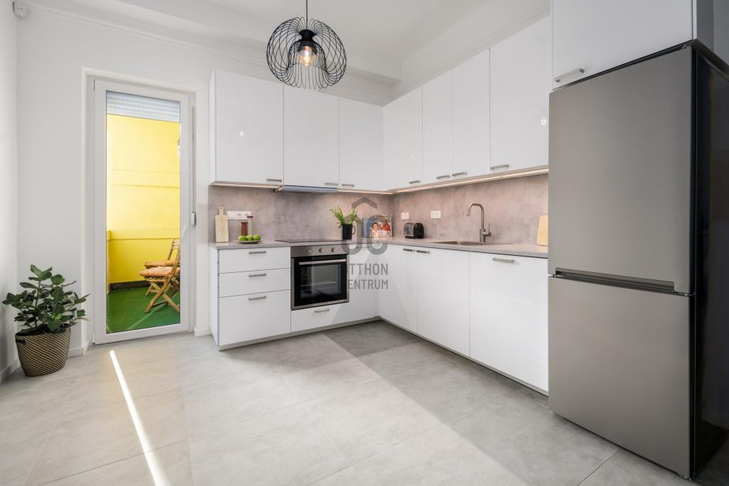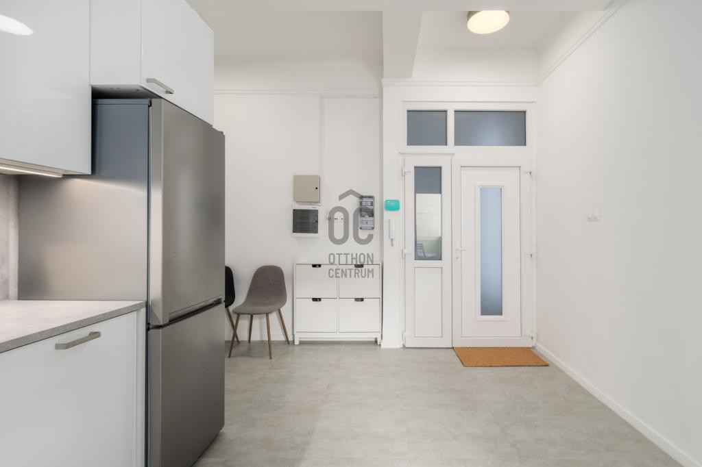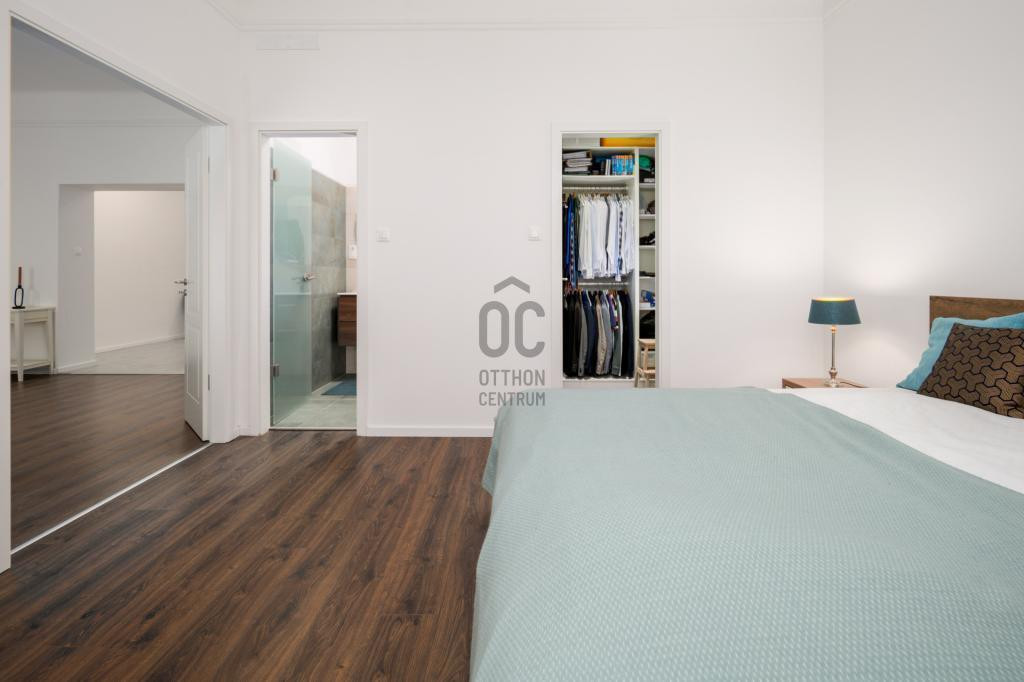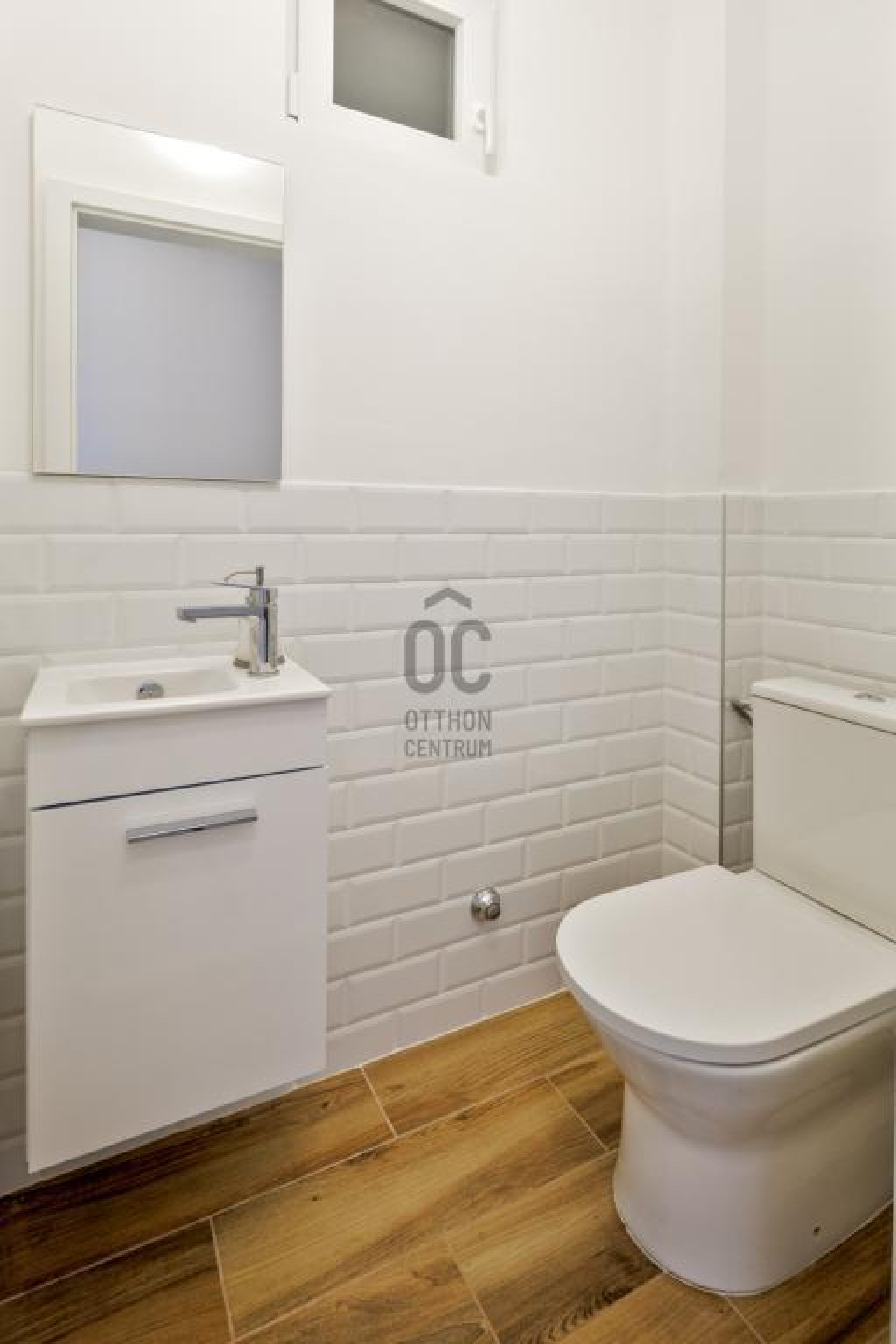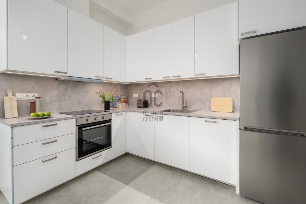 A bruttó 101nm-es felújított lakás bel-budai környezetben található közel a Várnegyedhez és a Mom Parkhoz is. Az ingatlant 2022-ben újították fel a külföldön élő tulajdonosok és csak időszakosan használták azóta. A felújítás során egy modern alaprajz kialakítása volt a fő szempont így jöhetett létre a tágas étkező-konyha és a nappali két hálószoba két fürdőszobás elrendezés. A lakás egy rendezett, Bauhaus jellegű , liftes társasház lépcsőházból nyílik. Először az étkező konyhába lépünk. A lakás tágas érzetét az egybenyitott terek és a 3.2m-es belmagasság adja. A magafényű fehér ,modern konyhabútor sütővel, mosogatógéppel és hűtőszekrénnyel felszerelt. A felső polcok alatt Led világítás gondolkodik a hangulatfényről. A konyhából közvetlen kijárat van a kényelmes, déli fekvésű erkély felé. Az erkély a második hálószobából is megközelíthető. A konyhát és nappalit tágas közlekedő köti össze ahol a vendég wc kapott helyett lichthof szellőzéssel. A közlekedőből a nyugati fekvésű tágas nappaliba lépünk. Az ingatlanban a felújítás során padlófűtést fektettek le. A fűtésről kondenzációs gázkazán gondoskodik. A lakás nyílászárói termo,hőszigetelt ablakok és az ablakok műanyag redőnyökkel felszereltek. A konyhában és közlekedőben fürdőkben hidegburkolat került elhelyezésre. A nappaliban és hálókban laminált parketta található. A nappaliból nyíló szintén utcára néző szülői hálószobának saját fürdőszobája és gardróbszobája van. A nappaliból a közlekedő vezet a nagyon jó méretű második hálószobához amelyik ideális gyerekszoba vagy vendég hálószoba lehet. Ehhez külön fürdőszoba és wc tartozik és itt helyezték el a mosógépet is. Az ingatlant ajánlom mindazoknak ,akik egy kényelmes, felső emeleti, modern otthont keresnek és akiknek fontos, hogy a tömegközlekedés lehetőségek (Déli pályaudvar metró állomás, 56-os,61-es villamos) néhány perc sétára elérhetők legyenek továbbá egy olyan területen keresik otthonukat ahol számos jó nevű iskola található és a vásárlási és kikapcsolódási lehetőségek is kényelmesen elérhetők. az utcában több helyen van havi bérletes parkolásra lehetőség, továbbá szomszédos ingatlanokban teremgarázshelyek bérelhetők /vásárolhatók. A közös költség havi 34.500Ft amely összeg a vízhasználati díjat tartalmazza. A lakáshoz a szomszédos házban nagyméretű egyedi garázs vásárlására van lehetőség 21 M Ft-ért. Ne hagyj aki ezt a minősági, tágas lakást!