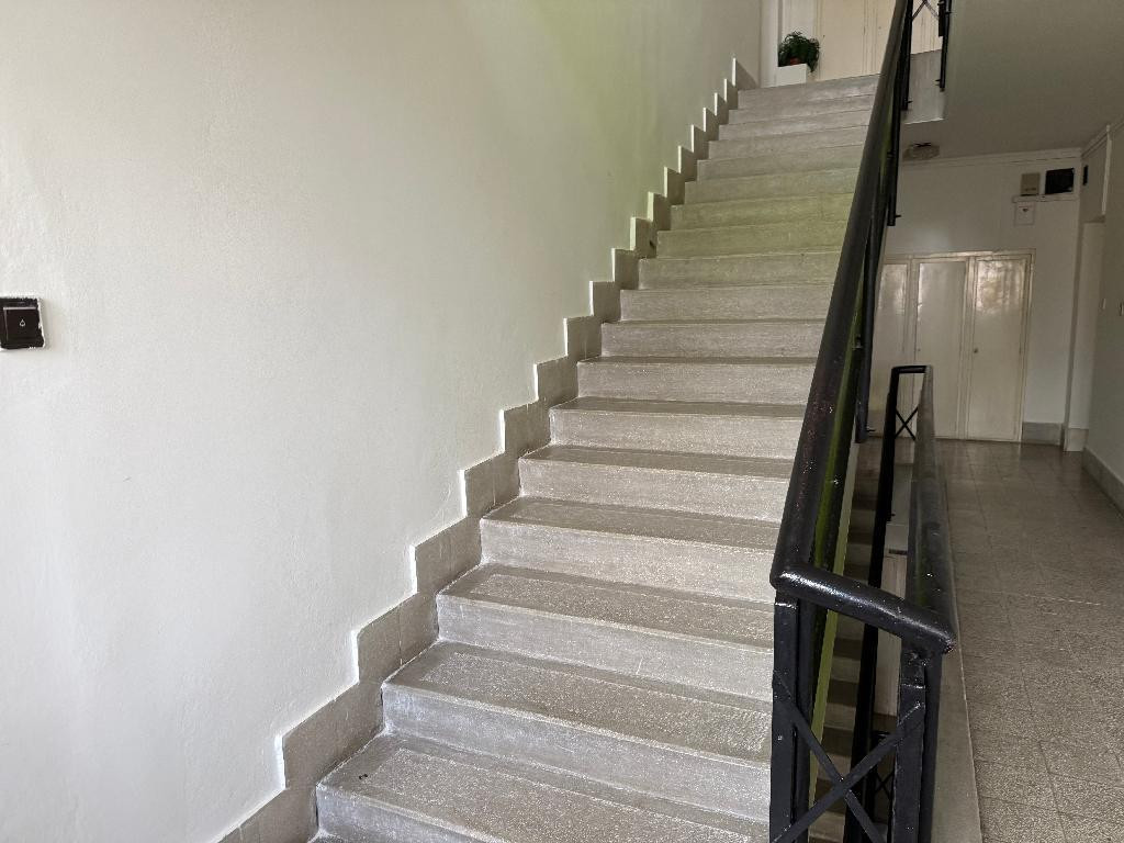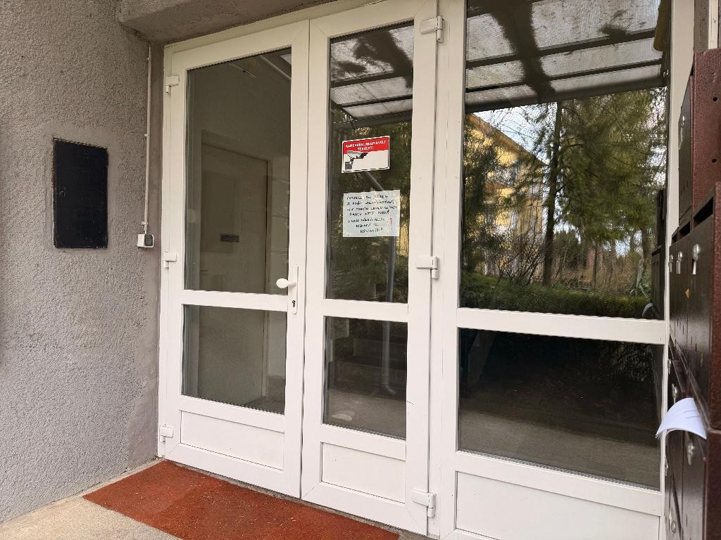 Az ingatlan egy kis lakóközösségű, tégla építésű társasház első emeletén található, és egy nagy erkéllyel rendelkezik.