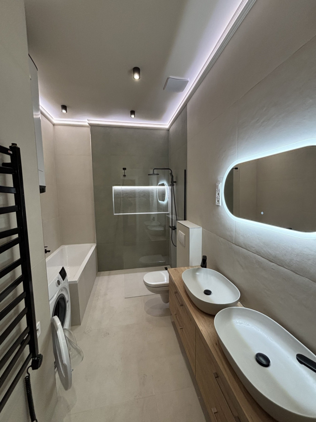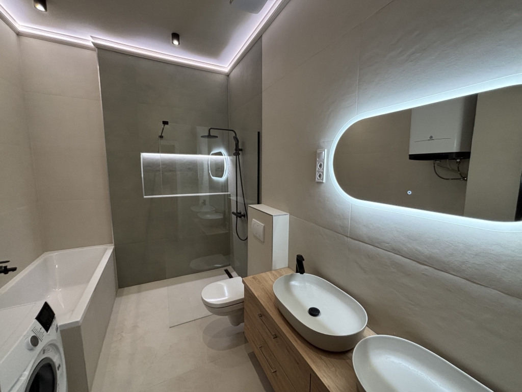 A lakás elosztása kiváló: 2 KÜLÖNÁLLÓ HÁLÓSZOBA és 2 ELSZEPARÁLT FÜRDŐSZOBA biztosítja a lakók kényelmét. A belső terek egyedi tervek alapján készült bútorokkal lettek berendezve, a hideg- és melegburkolatok pedig a legmagasabb prémium kategóriát képviselik.
