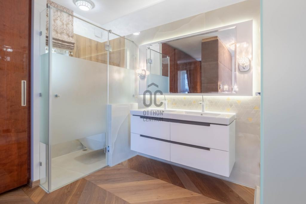 - A szobákat Ederholz tölgyfa parkettával, a többi helyiséget magas minőségű járólappal burkolták.