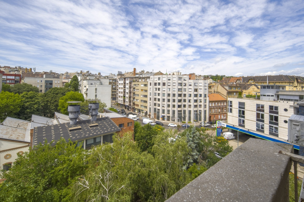 A konyha végén lévő, keleti fekvésű kis erkély a Duna és a Parlament felé néz, a kisebb hálószoba felőli nagyobb erkély pedig az épület belső kertje fölött a Mechwart liget-Pasarét irányába, nyugati fekvéssel.