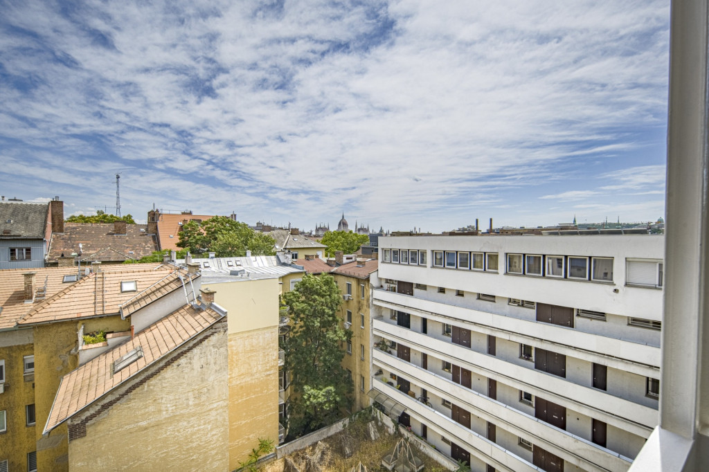 A II. kerületben, Viziváros szélén, a Dunától alig 3 percnyire eladó egy részben a Parlamentre és a Szabadság helyre panorámás, belsőépítész által áttervezett, nappali + 2 hálós, rendkívül világos, 76 m2-es, duplaerkélyes, legfelső, 6. emeleti lakás rendezett, zárt lépcsőházas, liftes társasházban, parkolási lehetőséggel.