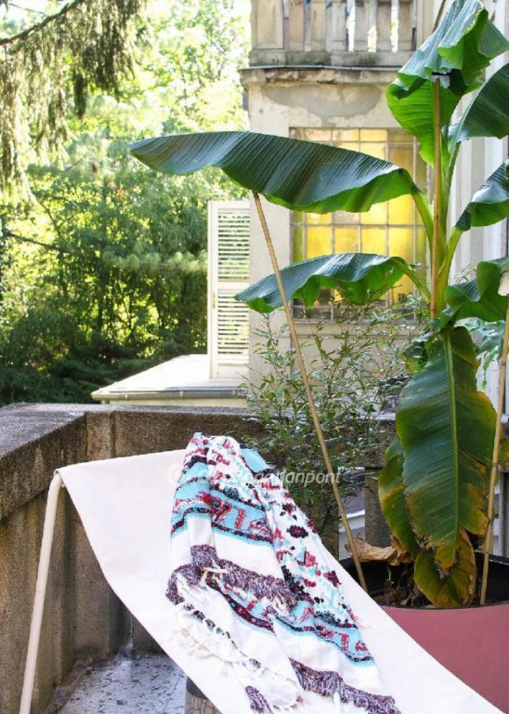 Ablakai és a napsütötte terasza a hátsó, örökzöld nyövényekkel beültetett kertre néznek, ahova a forgalom zaja nem hallatszik be.