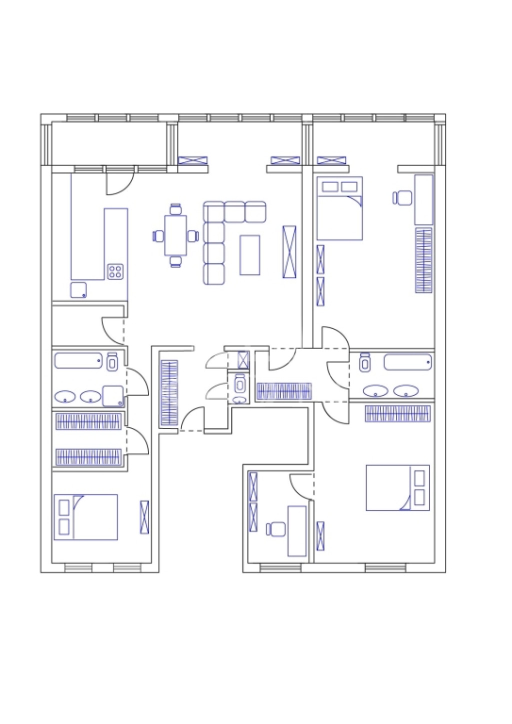-Hálószobák: a nappali két oldalán található a három különnyíló hálószoba. Emellett van egy kisebb szoba is, amely irodának vagy vendégszobának is tökéletesen használható.