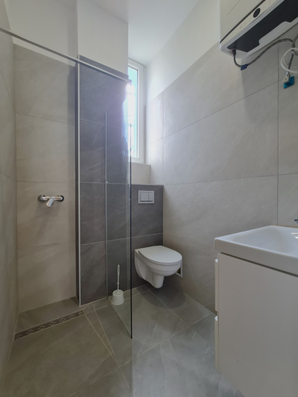 A lakás vadonatúj felújításon esett át, így minden részlet friss és modern. A beépített konyhabútor elektromos tűzhellyel, főzőlappal és szagelszívóval felszerelt, tökéletes egy gyors reggelihez vagy egy hangulatos vacsorához. A fürdőszoba épített zuhannyal készült, letisztult stílusban, és a meleg vizet egy wifi-n keresztül vezérelhető villanybojler biztosítja, így akár a telefonodról is irányíthatod.