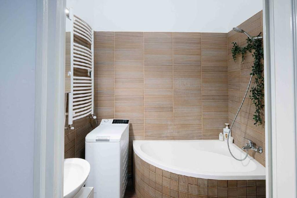 - Modern fürdőszoba nagy sarokkáddal,