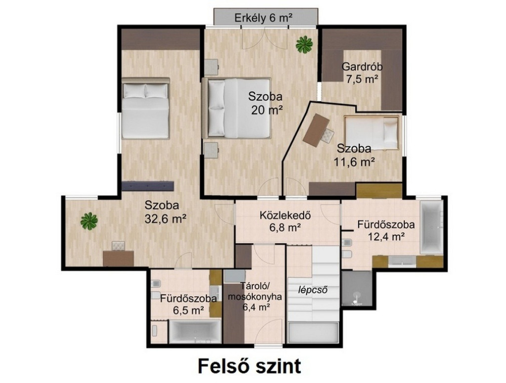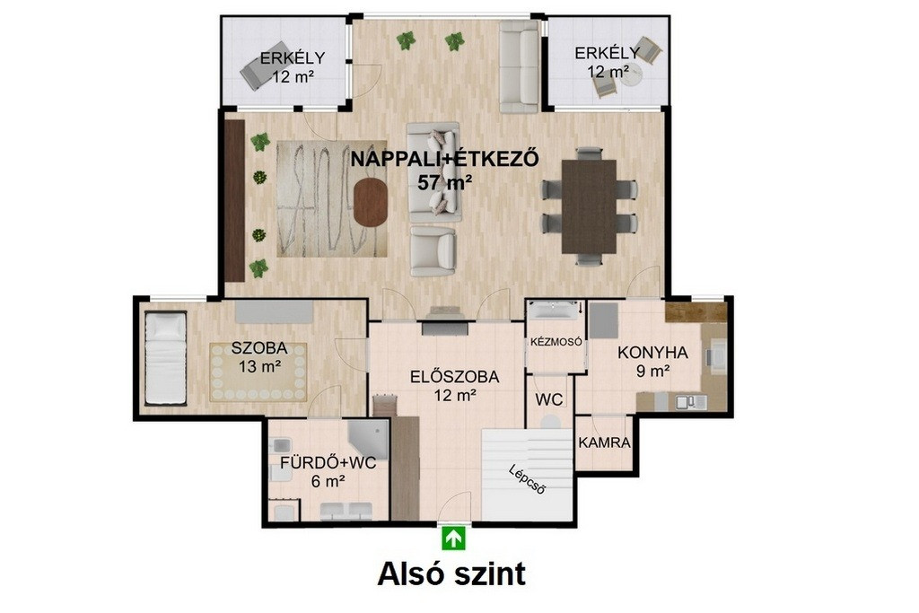 3 erkély, amelyek több irányból biztosítják a természet közelségét és a fényt.