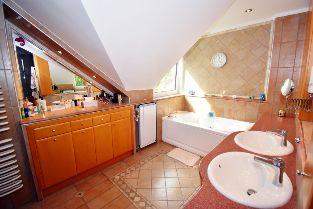 2 helyrajzi szám – akár két különálló lakásként is értelmezhető, de jelenleg egy nagy, reprezentatív otthont alkot.