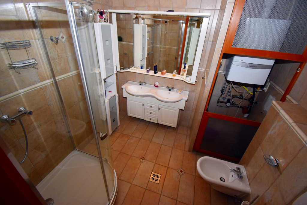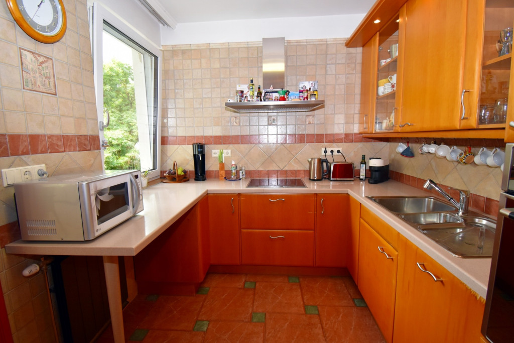 Kiváló műszaki állapot: hűtő-fűtő klímák minden szobában, elektromos kandalló, két Vaillant kazán, külön gáz- és villanyórák.