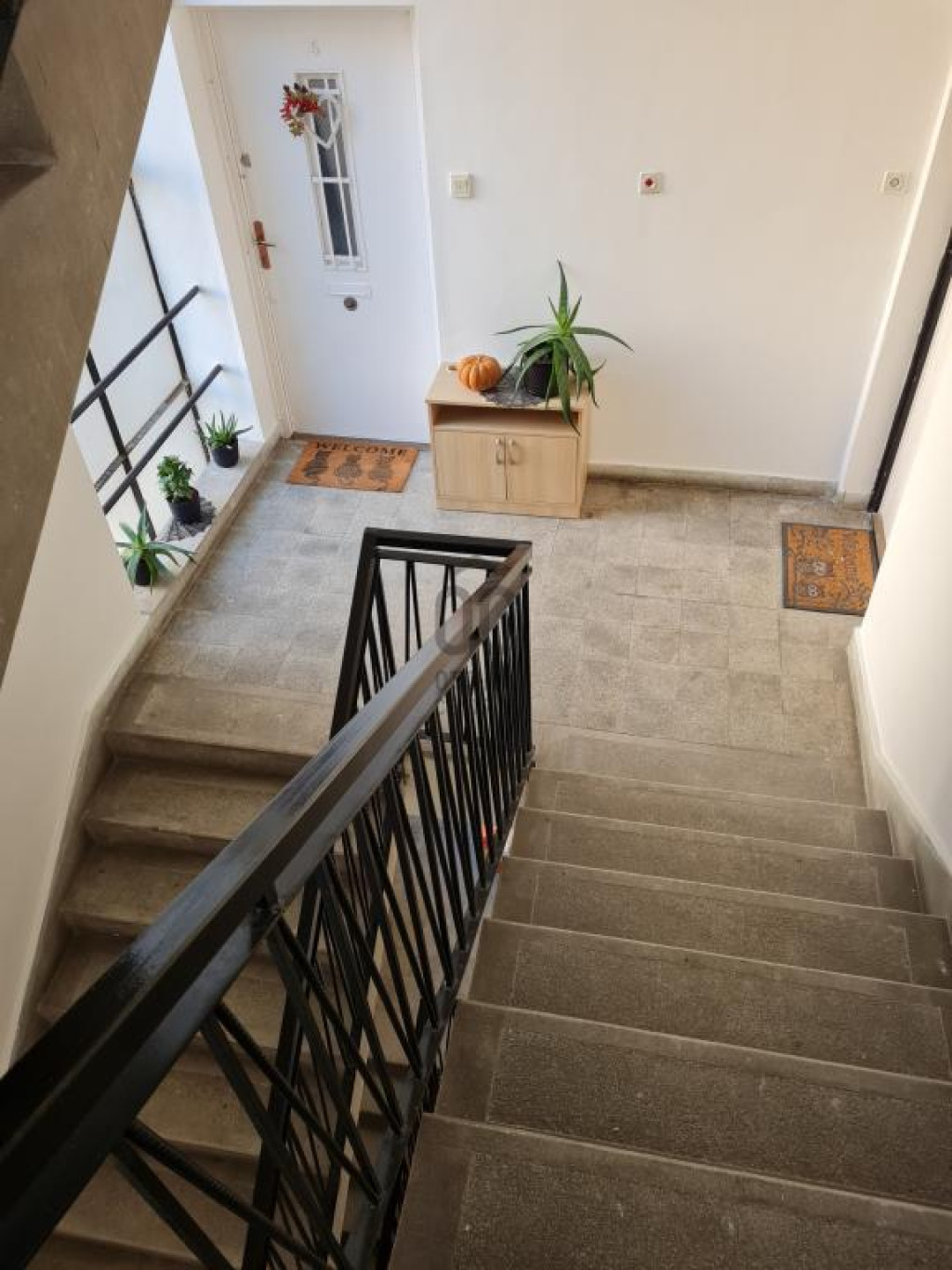 A lakás egy 6 lakásos társasház első emeletén helyezkedik el, egy csodás, zárt kertben, fák, bokrok és madárcsicsergés közepette