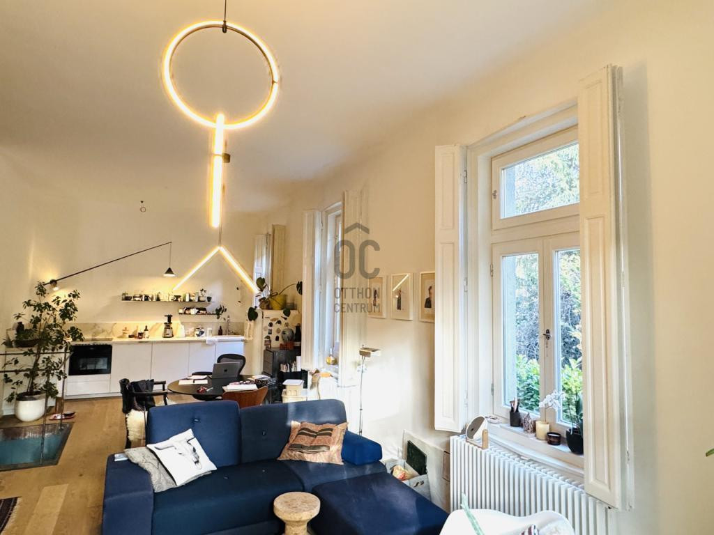 Pasarét egyik legszebb, örökzöldekkel övezett utcájában kínáljuk megvételre ezt a különleges atmoszférájú, belsőépítész által tudatosan megtervezett, magas esztétikai értéket képviselő duplex lakást.
