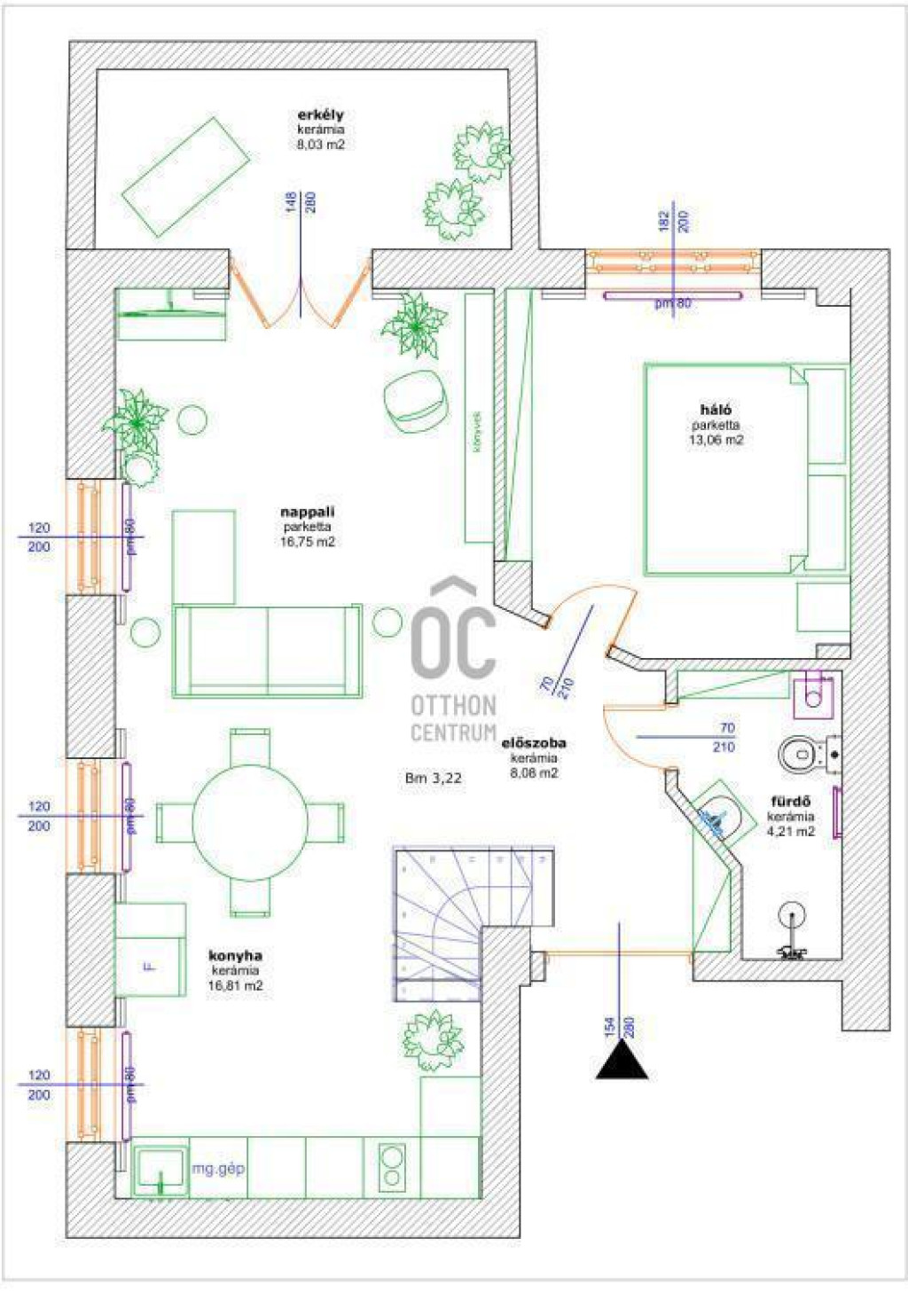 * 3,20 m belmagasság – elegáns, levegős térérzet