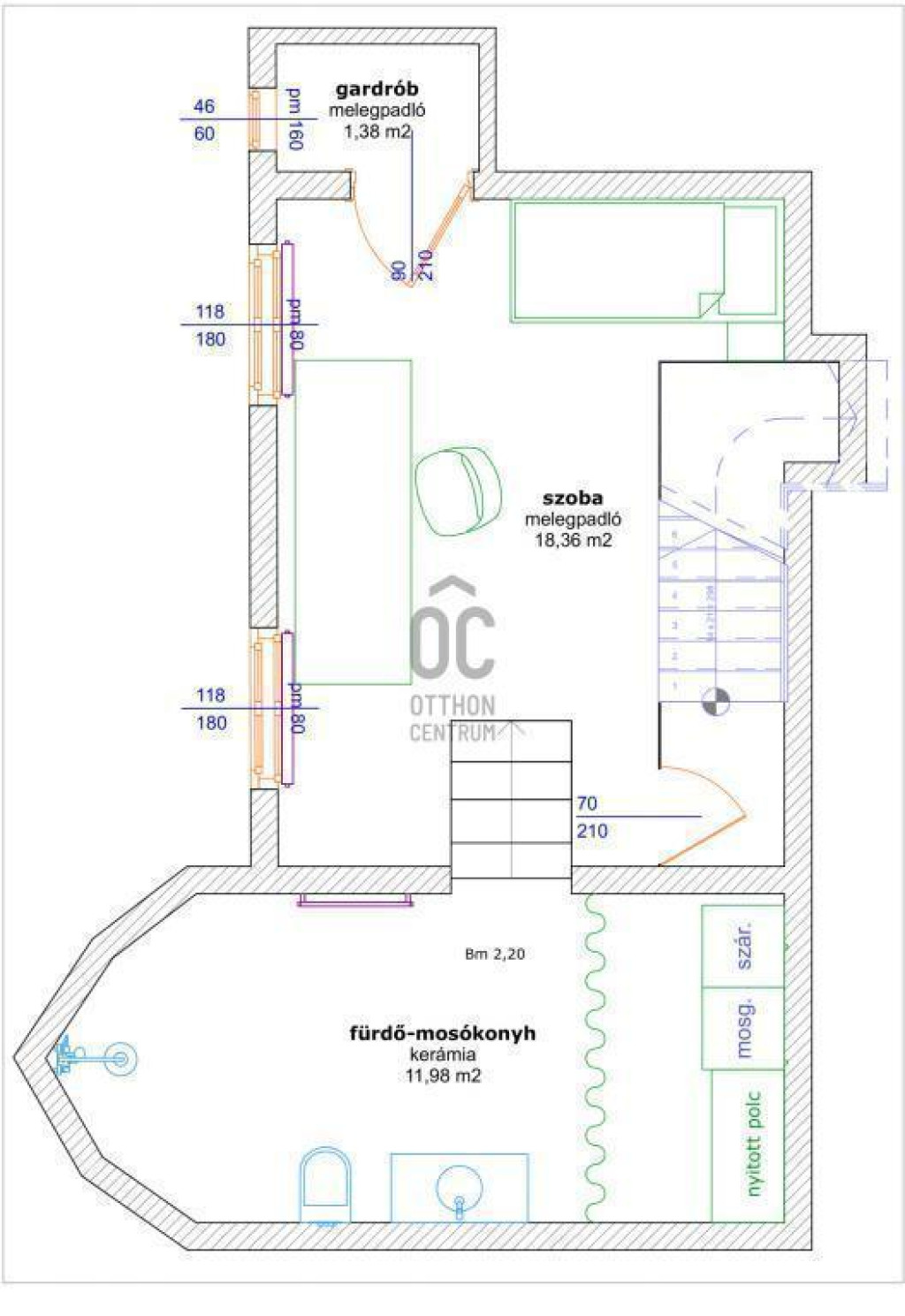 Szoba, gardrób, fürdőszoba, külön mosóhelyiség