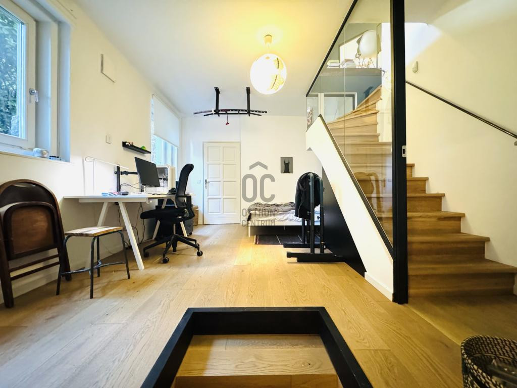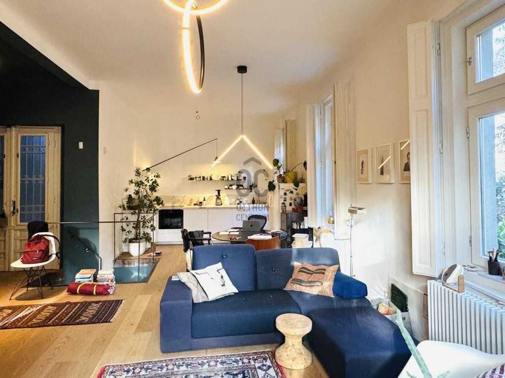 Eladó Pasarét egyik legszebb, örökzöldekkel övezett utcájában egy különleges, belsőépítész által tervezett duplex lakás.