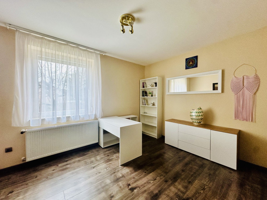A szobákban minőségi laminált parketta található. A műanyag nyílászárók redőnnyel felszereltek. A fűtést kombi cirkó biztosítja, amely gazdaságos és jól szabályozható.