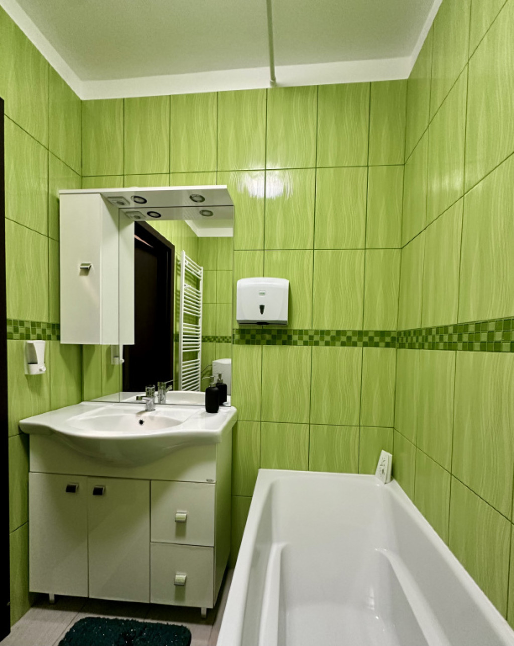 A lakás nem lakásként funkcionált az elmúlt időszakban, így állapota megkímélt, szinte újszerű. A konyha modern kialakítású és alig használt. Az elosztás praktikus: két különnyíló szoba, külön konyha, fürdőszoba és külön WC szolgálja a kényelmet.