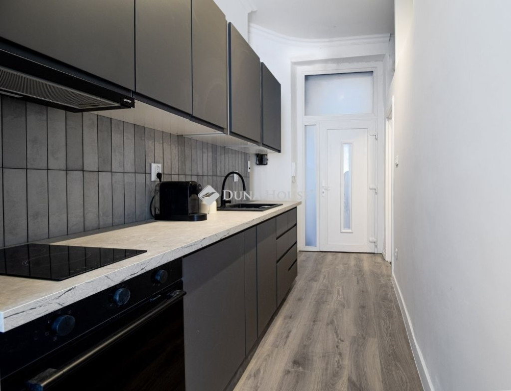 Eladásra kínálunk egy 31 m²-es, praktikus elrendezésű stúdiólakást, amely friss, teljes körű műszaki és esztétikai felújításon esett át. Az első emeleti, keleti tájolású ingatlan világos, barátságos tereit a 3,4 méteres belmagasság teszi igazán kellemes hangulatúvá, miközben a reggeli napfény természetes módon tölti meg a lakást. A felújítás során modern, háromrétegű, kiváló hangszigetelésű nyílászárók, új beltéri ajtók kerültek beépítésre. A lakótérben a fürdőszobát kivéve vízálló laminált parketta található, ami egységes, meleg megjelenést ad a térnek. A fürdőszoba minőségi Marazzi burkolattal készült, ablakos kialakításának köszönhetően természetesen szellőzik, az álmennyezet felett pedig praktikus extra tárolási lehetőség került kialakításra. A lakás padlófűtéssel rendelkezik, amely egyenletes, komfortos hőérzetet biztosít. A beépített konyhabútor az ár részét képezi, így az ingatlan azonnal költözhető vagy bérbe adható állapotban várja új tulajdonosát.