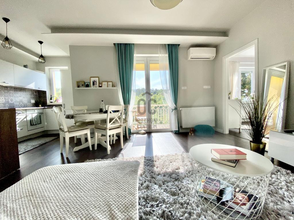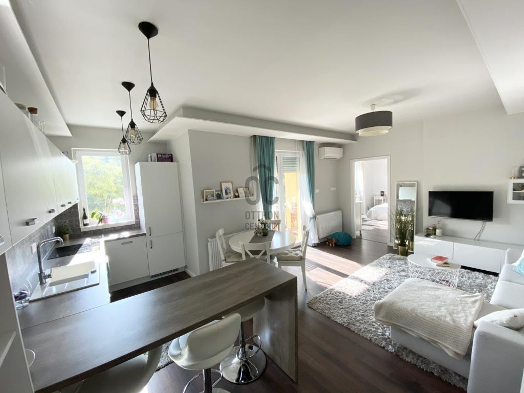 A lakás rendkívül világos, kiváló elrendezésű. Tágas, amerikai konyhás, étkezős nappalival rendelkezik, melyből egy csodás, panorámás, 5 m2-es erkély nyílik. A hangulatos, nagy méretű hálószobában egy nagy méretű pax gardróbszekrény biztosít rengeteg tárolási lehetőséget. Az előszobából nyílik a letisztult, modern, kádas fürdőszoba.
