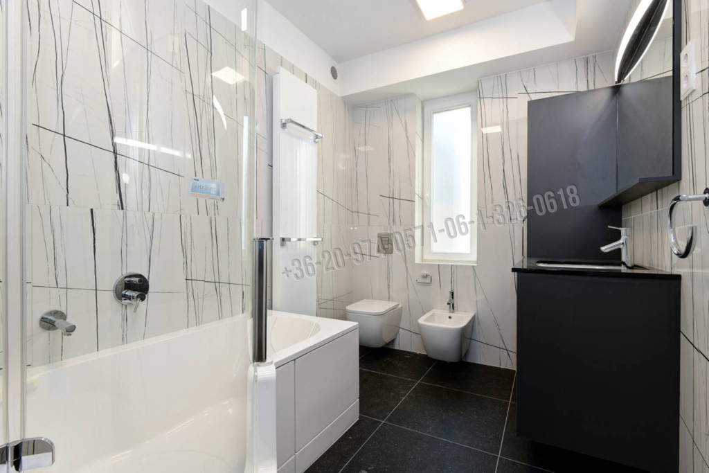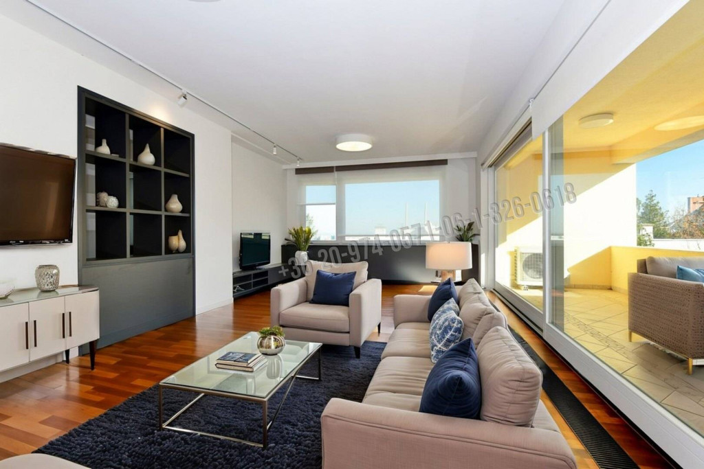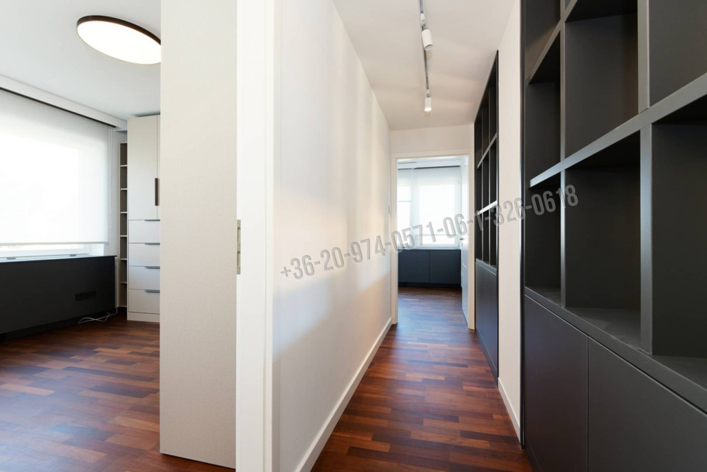 A lakásban tágas 28 nm-es nappali, amelyből nagy méretű erkély nyílik, modern, gépesített konyha és különálló étkező, három külön nyíló hálószoba, fürdőszoba wc-vel és bidével, mosókonyha wc-vel, beépített mosó- és szárítógéppel helyiségek találhatók. Cirkófűtés + minden helyiségben légkondicionáló.