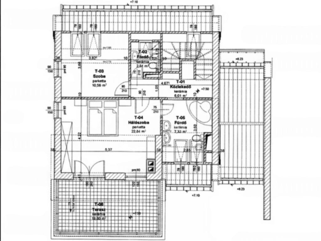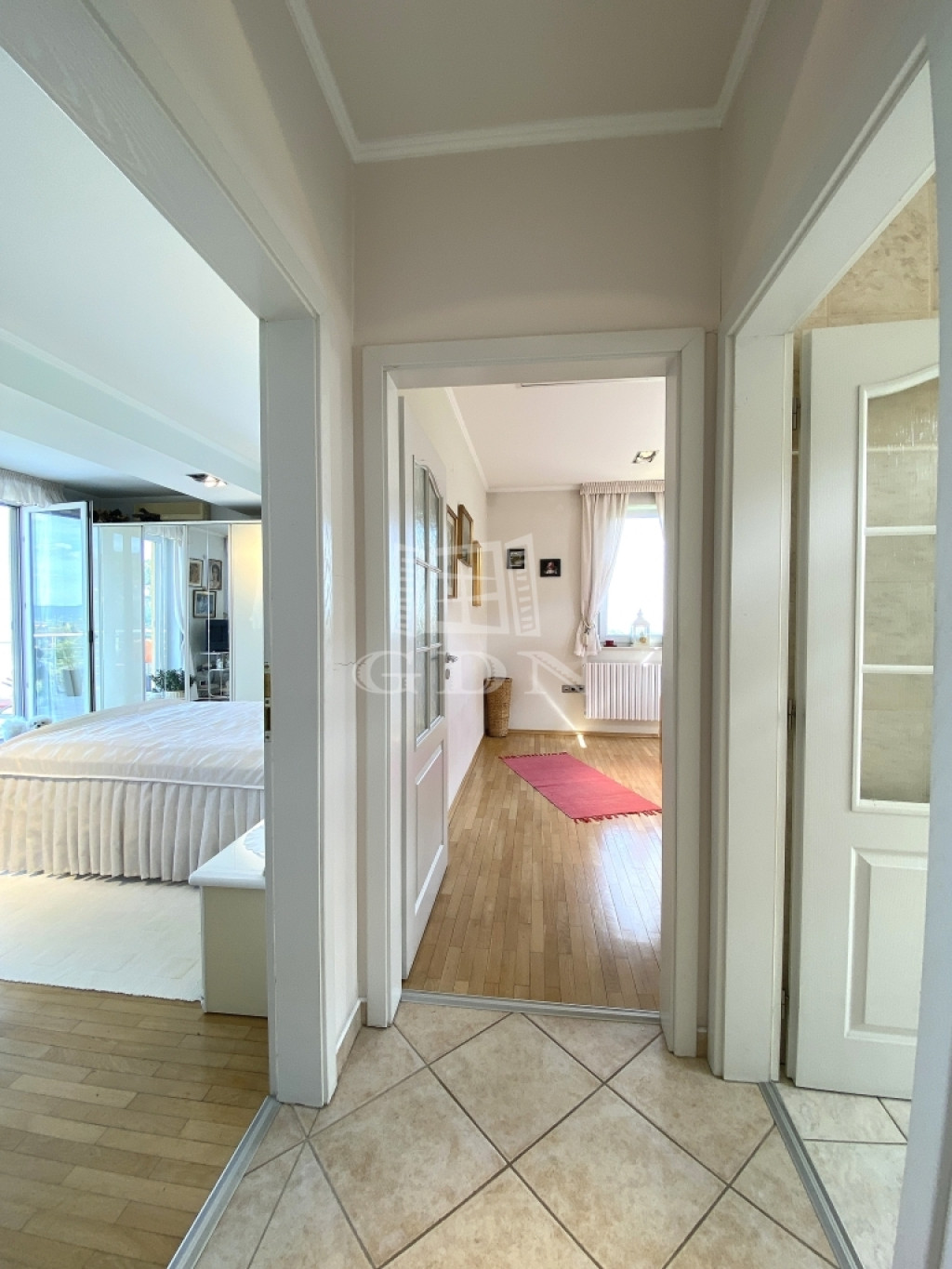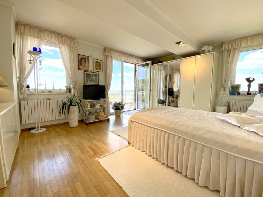 Mindkét szoba panorámás. A nagyobb hálószoba egy közel 20 m2-es teraszkapcsolattal rendelkezik.