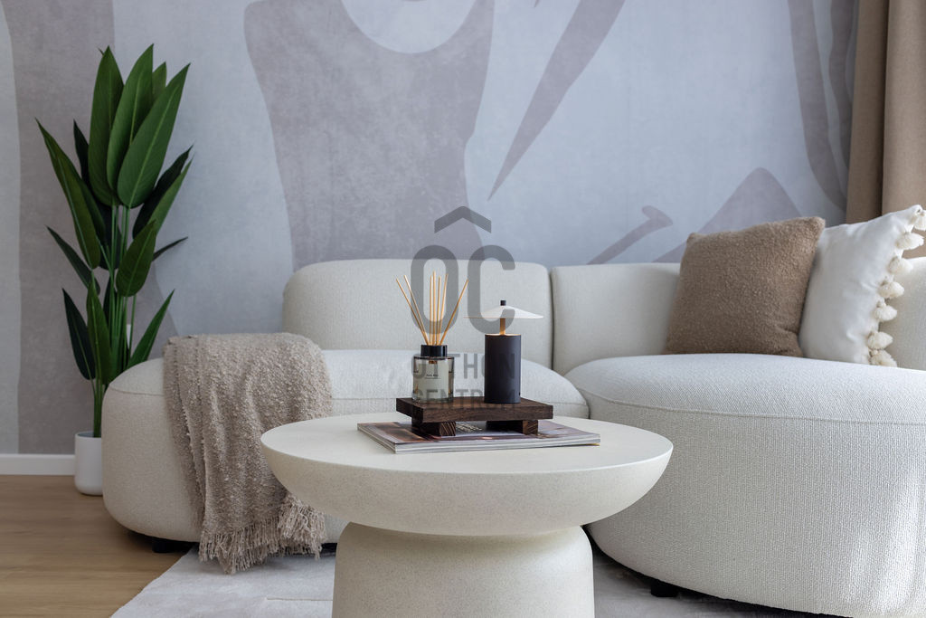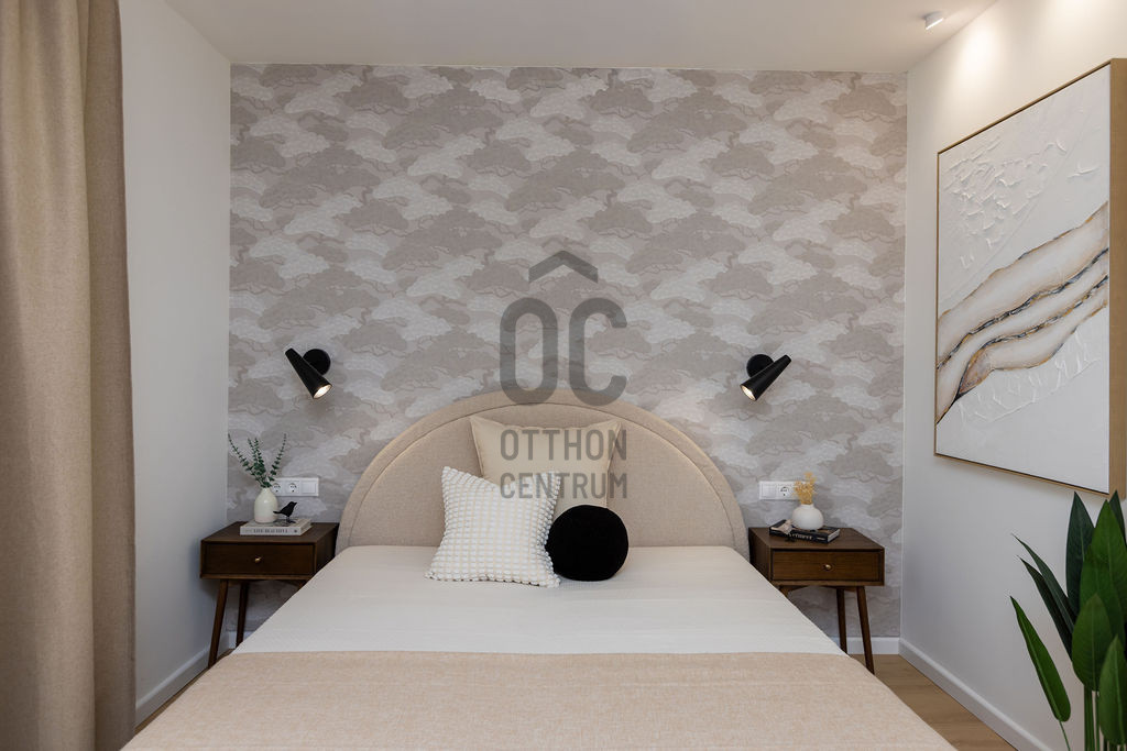 A belső kialakításnál a funkcionalitás, minőség és az esztétikum egyensúlya volt a fő szempont - letisztult anyaghasználat, magas minőségű burkolatok és jól megtervezett térkapcsolatok teszik élhetővé és időtállóvá az otthont. A lakás alaprajza a modern városi élethez hangolt.