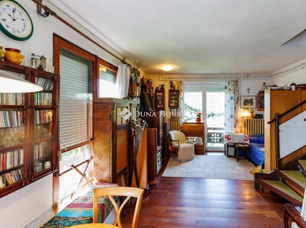 A lakás II. kerület egyik exkluzívabb részén található zsákutcában van. Közel 100 m² hasznos alapterületű (bruttó 140 m²) ingatlan elvehetetlen örök panorámával rendelkezik a János-hegyre és a városra. A lakás kényelmes méretű konyhával, nappalival, három hálószobával, dolgozó/hobby szobával, fürdőszobával (+különálló WC is), tárolóhelyiségekkel rendelkezik. A nappalihoz csatlakozik egy nagyobb méretű erkély, melyről csak az erdőt, a János-hegyet lehet látni. A házhoz 1000 m²-es közös kert tartozik, melyben lehetőség van sütögetésre, pihenésre, mivel ez a része a teleknek pont nem az utca felé néz. Infrastruktúrálisan is ideális, a buszmegálló kb 50 méterre van (Széll Kálmán tér 15 perc ezzel a busszal), háziorvosi rendelő az utcában, iskola, óvoda az utca végén van. Több játszótér és sportolási lehetőségek is vannak a közelben. Parkolás az utcán, de kialakítható kocsibeálló is a kertben.
