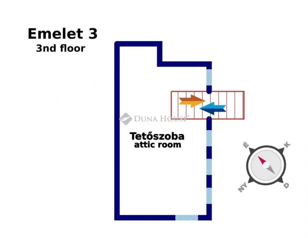 Elrendezés: 2 hálószoba, 2 fürdőszoba, amerikai konyhás étkező, kis tetőtéri szoba