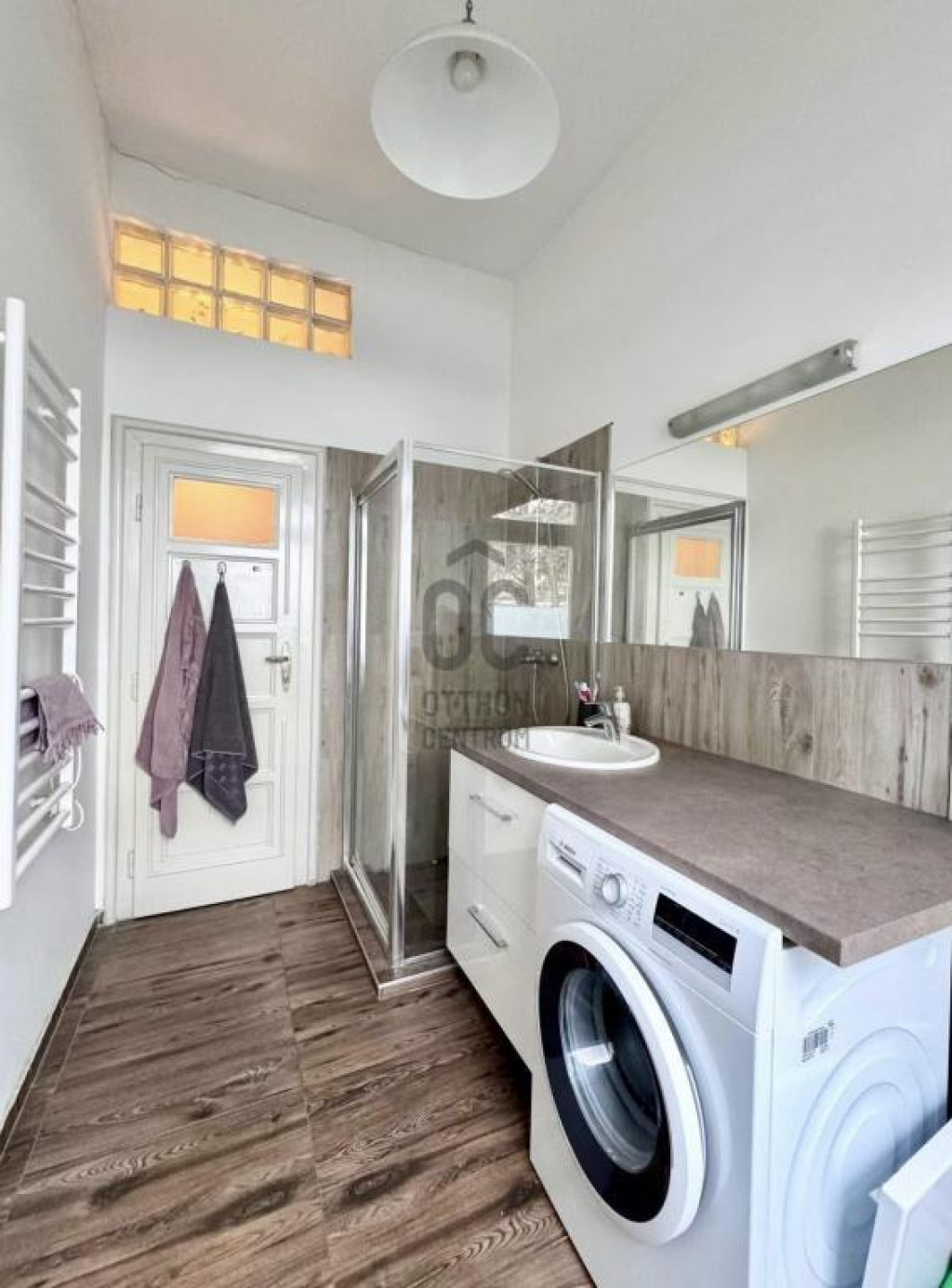 A 72 nm-es, 2 szobás, magasföldszinti otthon egy elegáns, patinás villaépületben kapott helyet, ahol mindössze hat lakás található. A tágas nappalit hatalmas ablakok teszik különösen világossá, így a tér barátságos, meghitt hangulatot áraszt. Ideális környezet a mindennapi pihenéshez vagy egy kellemes reggeli kávé elfogyasztásához.