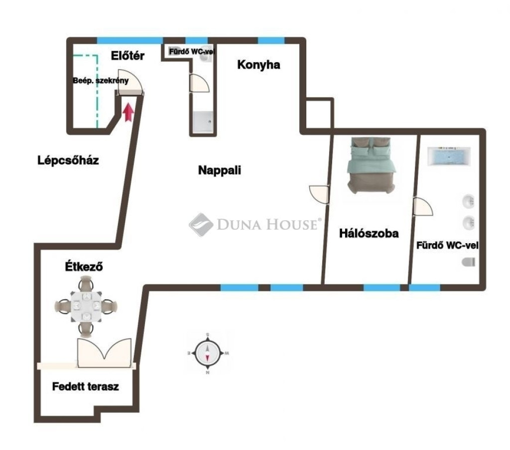 Budapest II. kerületében eladó egy nappali + hálószobás, erkélyes lakás két fürdőszobával! 66 nm-es, fedett teraszos, belső kertre néző gyönyörű Otthon egy kevés lakásos, zárt lakóparkban található. A fényárban úszó előtérből a nagyméretű nappaliba érkezünk. Innen nyílik egy elszeparált étkező, abból pedig a hangulatos fedett terasz kilátással a kertész által gondozott belső kertre. Mindkét fürdőszobában olaszos stílusú csempe díszíti a falakat, a nagyobb fürdőszobában pedig egy hatalmas jakuzzis kád is van.A lakás az épület 2. szintjén helyezkedik el, ahol másik lakásnak már nincs bejárata. Felette még egy beépítetlen padlástér van. Egy festés után költözhető, tehermentes az ingatlan!