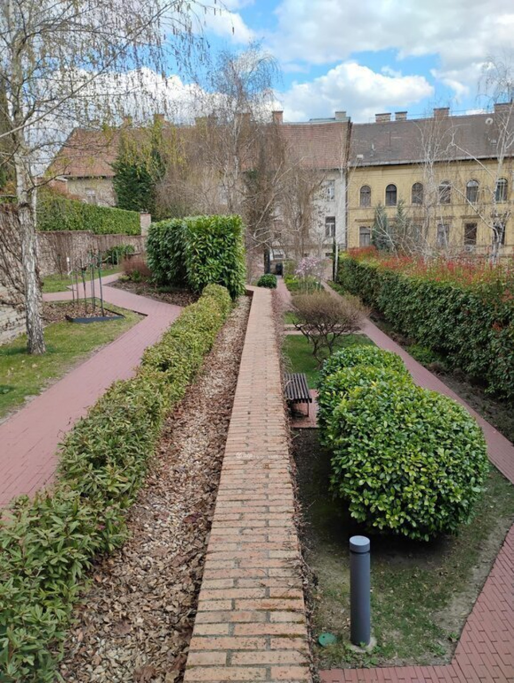 A ház felső, Mecset utcai kapuján kilépve szinte azonnal egy gyönyörű, gondozott kertben találod magad, magnóliák, levendulák, rózsák mindenütt, a környék ligete tökéletes hely egy reggeli kávéhoz vagy egy esti lazuláshoz, mintha csak saját parkod lenne!