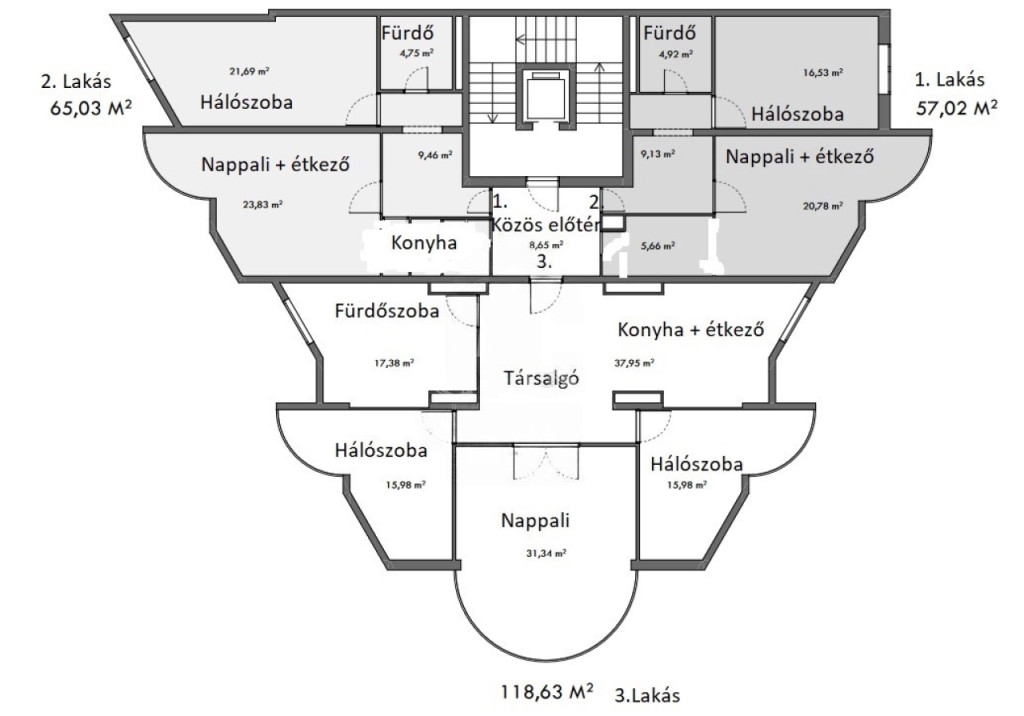 • Nagy alapterületű, több egységre bontható lakás – akár három különálló lakás is kialakítható