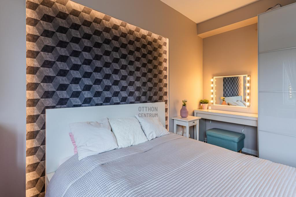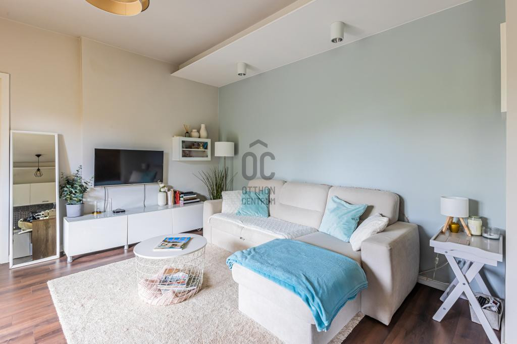 A lakás rendkívül világos, kiváló elrendezésű. Amerikai konyhás nappalival rendelkezik, amelyből egy 5mm-es terasz nyílik. Hálószobája nagy méretű és jól pakolható.
