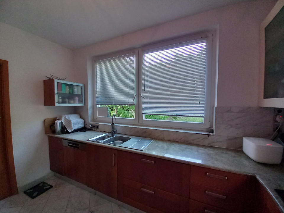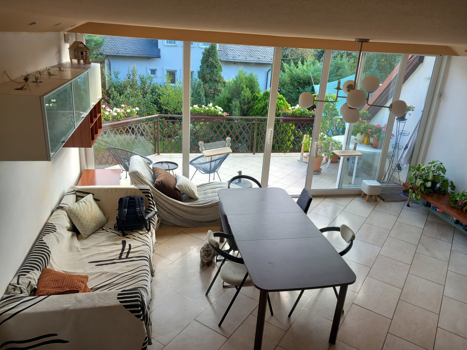 A Budai-hegyekre néző panoráma, a tágas terasz és a privát használatú kert igazi zöldövezeti nyugalmat biztosít.