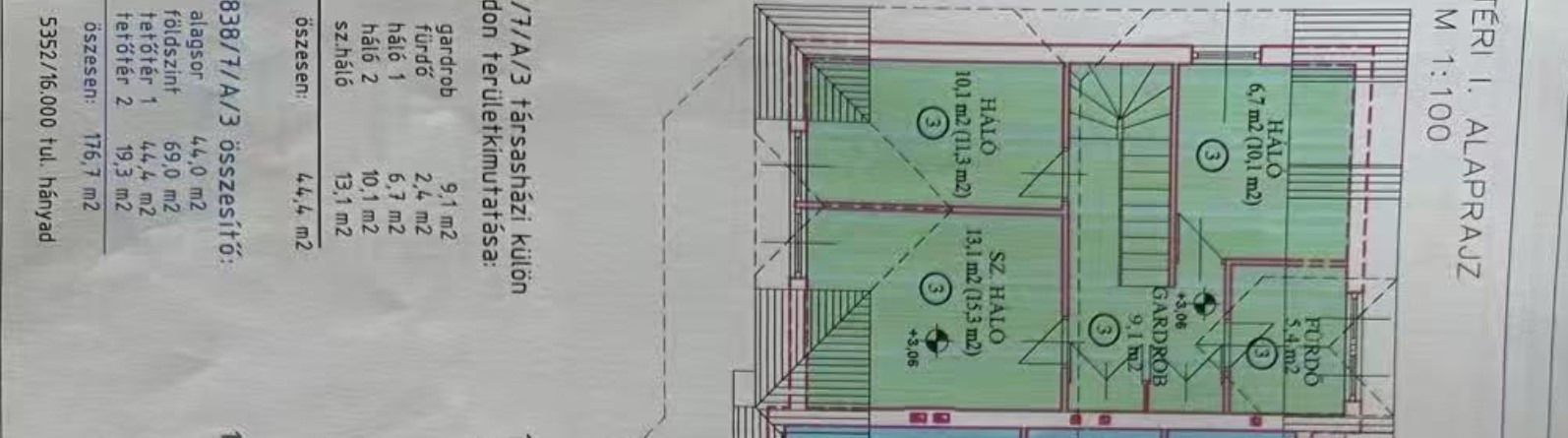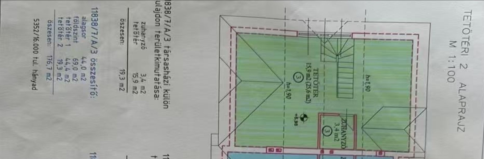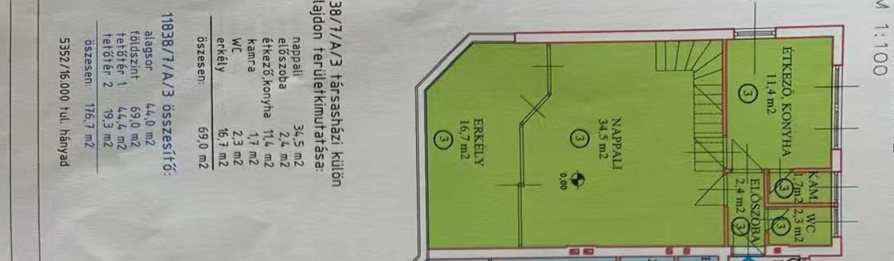 A telek kb. 1000 m², osztatlan közös tulajdonban van, a ház társasházi formában működik, elővásárlási jog nélkül.