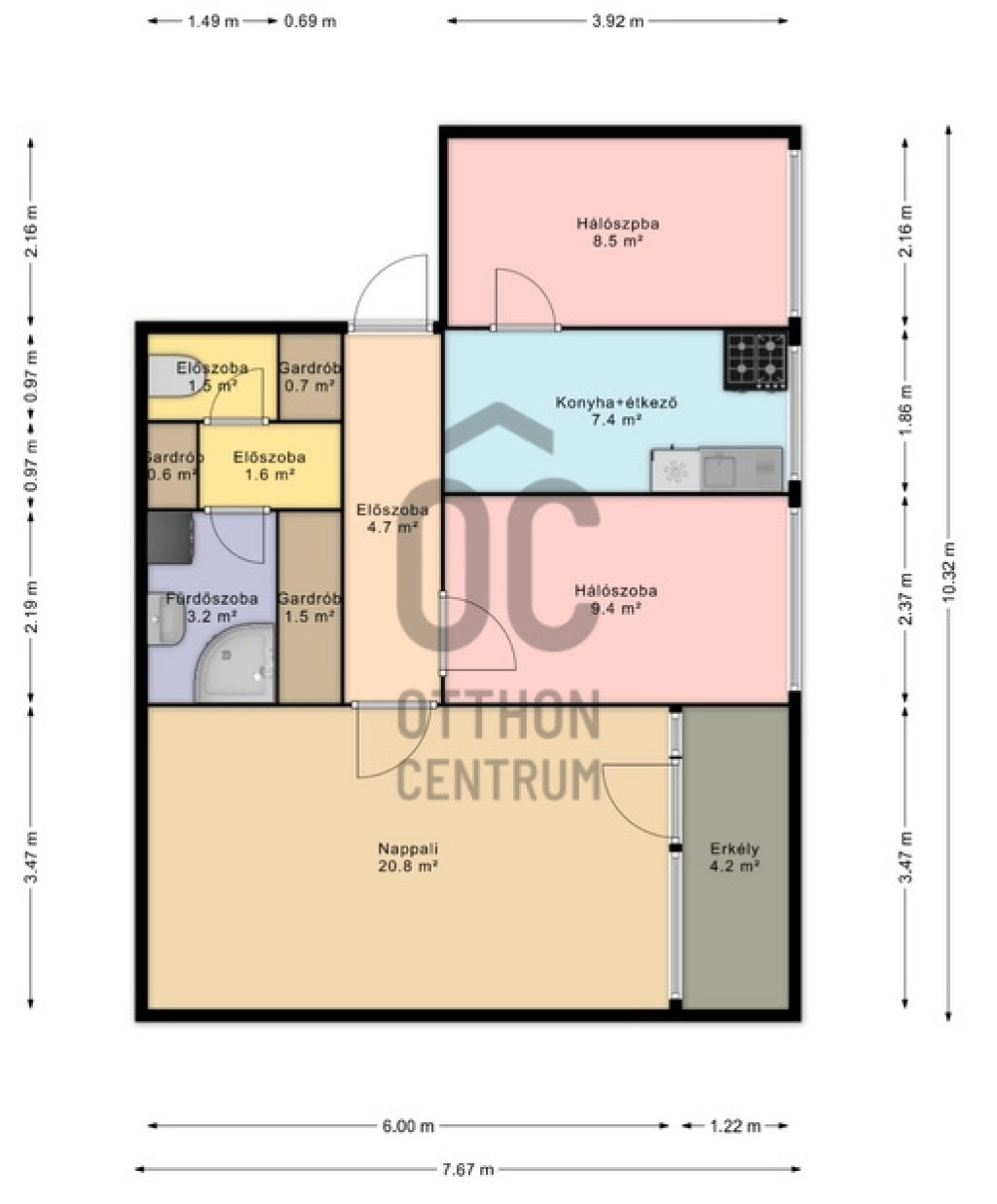 A lakás elosztása kifejezetten jól átgondolt: