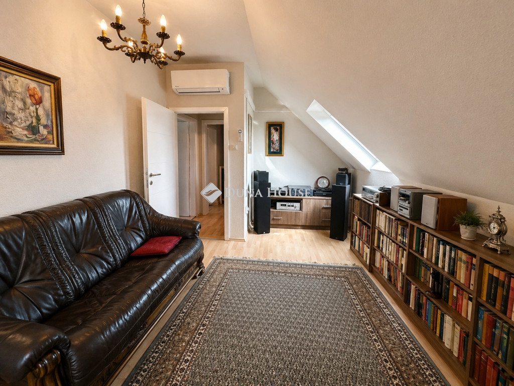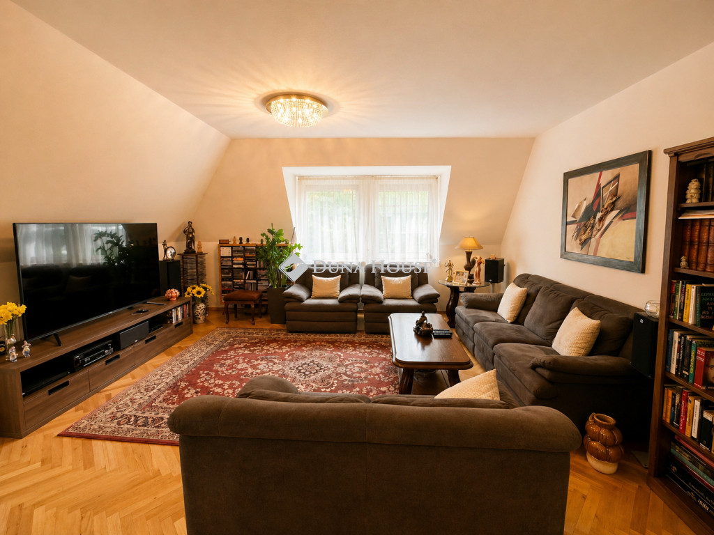 II. KERÜLET, ZÖLDMÁL TÁGAS, BELSŐ KÉTSZINTES CSALÁDI OTTHON NAGY TERASSZALBudapest II. kerületének egyik legkedveltebb, zöldövezeti részén, Zöldmálon kínálunk megvételre egy kiváló adottságú, belső kétszintes, nagy teraszos otthont, amely ideális választás nagyobb családok számára.Az ingatlan egy rendezett, szigetelt társasház II. emeletén helyezkedik el, nyugodt, kulturált lakókörnyezetben.FŐBB PARAMÉTEREK- Lakótér: nettó 134 m² (98 m² alsó szint + 38 m² felső szint)- Szobák száma: 6- Tájolás: déli, dél-nyugati- Emelet: II. emelet (lift nincs)- Erkély / terasz: 16 m²- Állapot: felújított- Építés éve: 1997ELOSZTÁS CSALÁDOKNAK OPTIMALIZÁLVAAlsó szint (nettó ~98 m²):- Tágas nappali étkezővel- Külön konyha kamrával- 3 hálószoba (beépített szekrényekkel)- Fürdőszoba (kád + zuhanyzó)- Külön WC- Előtér, tárolási lehetőségekkelFelső szint (nettó ~38 m²):- 2 hálószoba- Fürdőszoba (zuhanyzó + WC)- Mosógép kiállásTöbbgyermekes családok számára is ideális térszervezésJól szeparálható életterek, mégis egységes otthonMŰSZAKI TARTALOM- 9 éve teljes körű felújítás- Új villanyvezetékek, modern hálózat- Új radiátorok, hőmérséklet-szabályozással- Vaillant kondenzációs kazán- Légkondicionálás (hűtés-fűtés)- Elektromos redőnyök, szúnyoghálók- 8 ponton záródó biztonsági ajtó- RiasztórendszerKÜLTÉR ÉS KOMFORT- 16 m²-es, déli fekvésű terasz- Elektromos napellenző- Belső kertre néző, nyugodt környezet- Világos, napfényes terekPARKOLÁS ÉS TÁROLÁS- Önálló, 28 m²-es garázs + tároló- Külön helyrajzi számon- Saját villanyórával- Garázs előtt további parkolási lehetőség- Garázs és tároló ára: +20.000.000 Ft (kötelezően megvásárolandó)KÖLTSÉGEK- Közös költség: 23.150 Ft/hó- Fenntartás: korszerű, jól szabályozható rendszerLOKÁCIÓ CSALÁDI ÉLETHEZ IDEÁLIS- Zöldövezeti, nyugodt környezet- Rózsadomb Center pár perc- Iskola, óvoda, orvosi rendelő a közelben- Kiváló közlekedés (29, 111 busz)MIÉRT IDEÁLIS CSALÁDOKNAK?- Nagy alapterület, több generáció számára is alkalmas- 5 hálószobás kialakítás lehetősége- Két szint természetes szeparáció- Tágas közösségi terek + privát zónák- Terasz + zöld környezetEz az ingatlan egy valódi, hosszú távra tervezhető családi otthon, ahol a tér, az elosztás és a lokáció együtt biztosítanak stabil életminőséget Budapest egyik legkeresettebb részén.Megtekintés előzetes egyeztetés alapján.