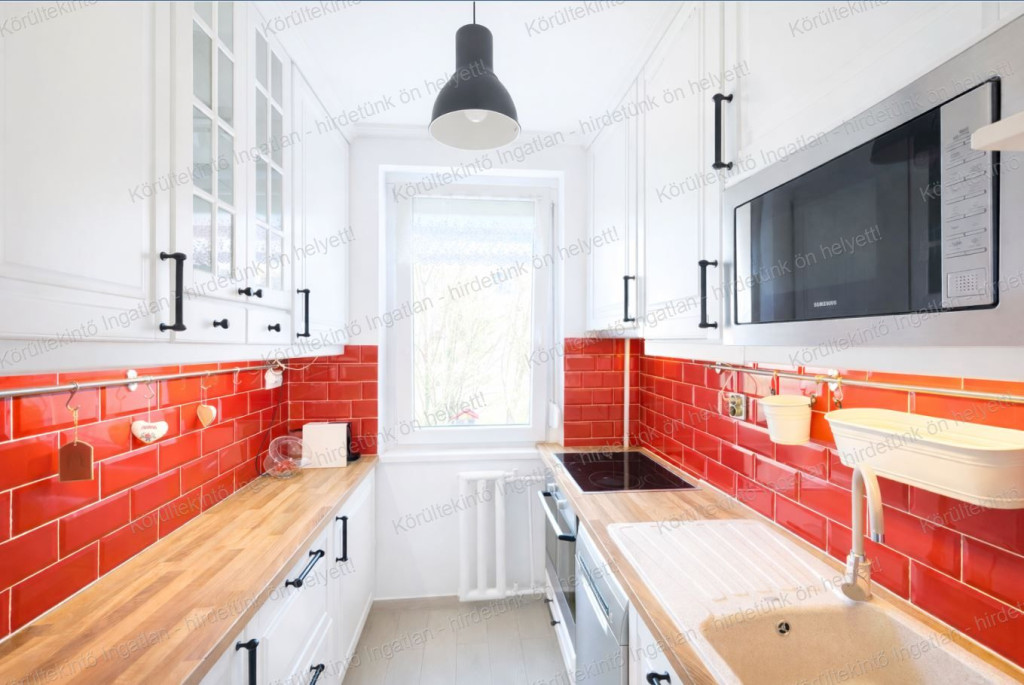 •Lakberendező által tervezett, nagyon praktikus és szép kialakítású konyha, beépített Bosch márkájú gépekkel, mikrohullámú sütővel, szagelszívóval, sütővel és mosogatógéppel