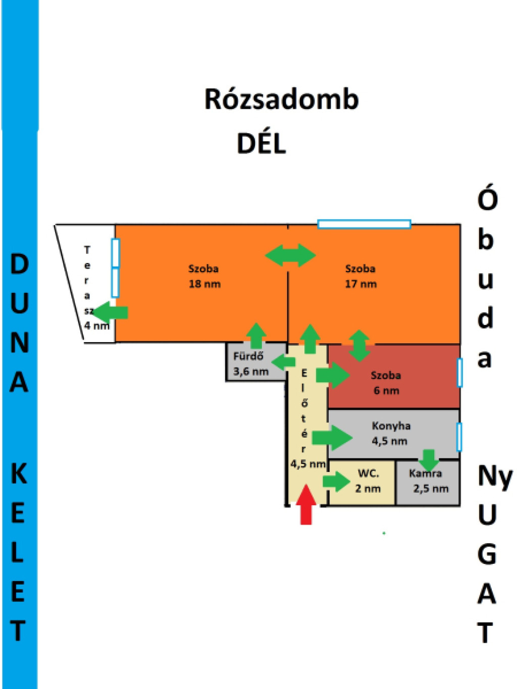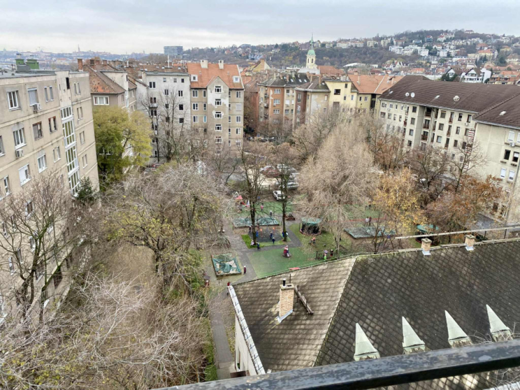 Azért jó az elhelyezkedése, mert van egy házsor előtte, ami nem engedi át a zajokat, viszont a kilátást nem akadályozza, ellátni felette. A Duna miatt pedig állandó friss levegő van itt.