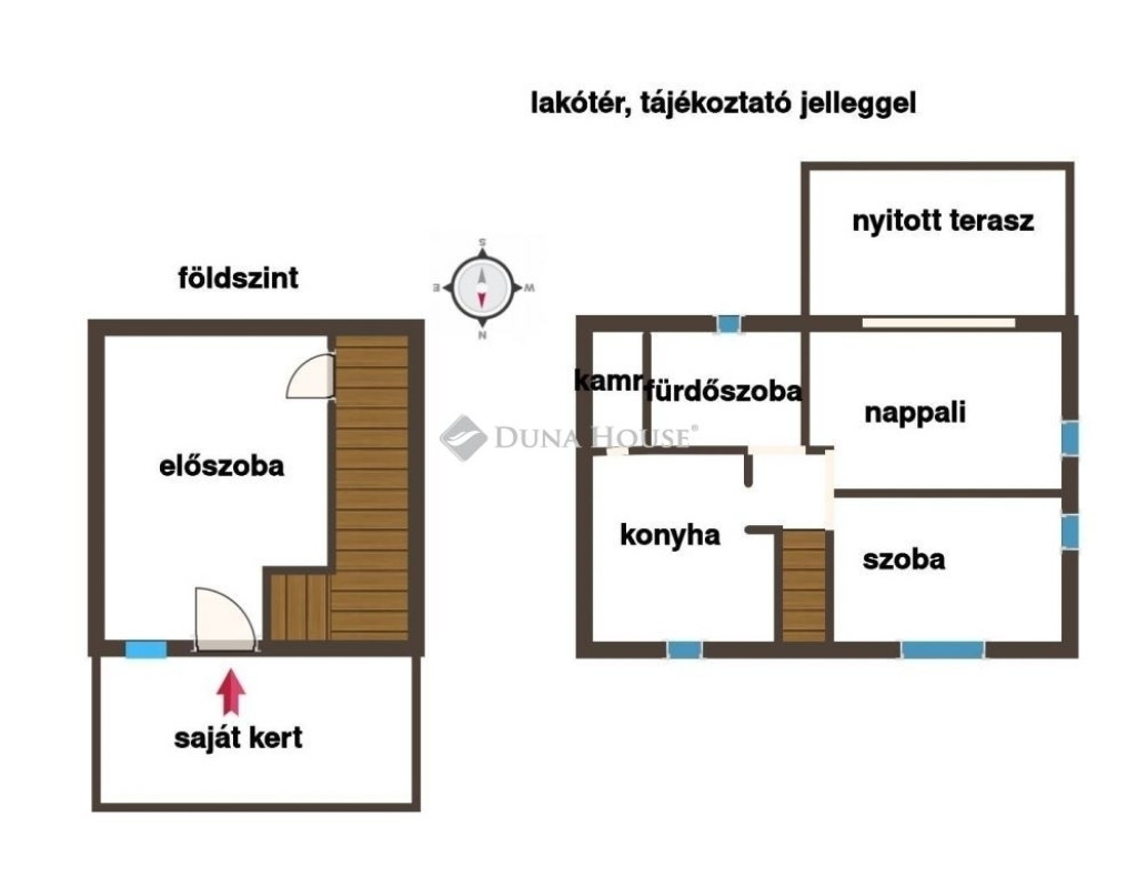 A lakásba belépve egy tágas, 12 nm-es előszoba fogad minket (praktikus lépcső alatti tárolóval). Az emeleten kapott helyet az élettér:
