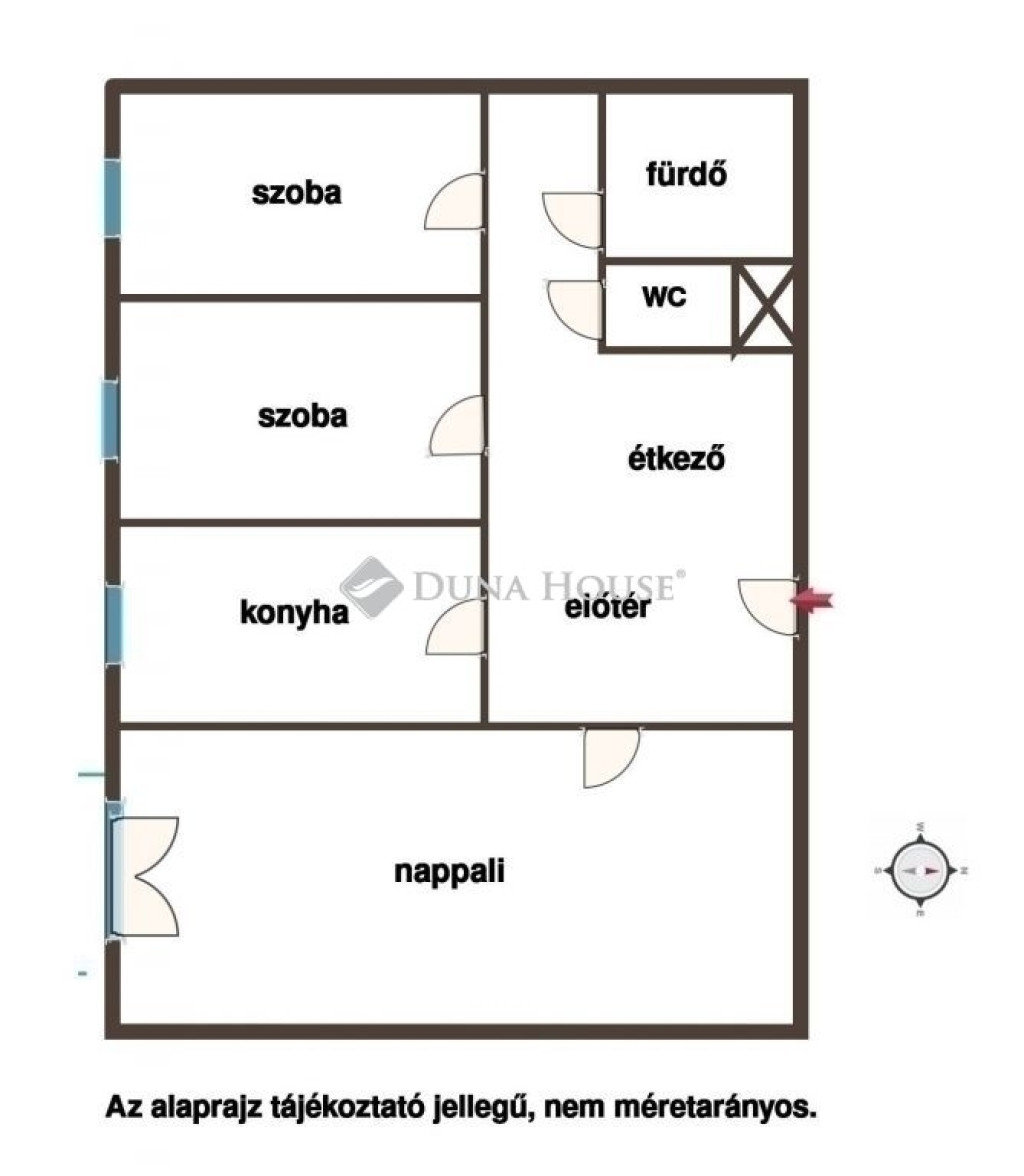 Az átgondolt elrendezésű ingatlanban (ajtón át megközelíthető) nappali + 2 hálószoba, étkező, konyha, fürdőszoba és külön WC található - tökéletes választás akár családoknak is.