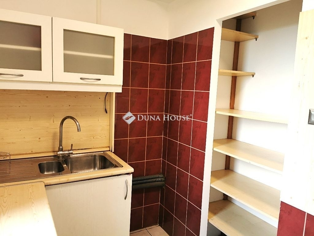 A konyha világos, (ablakos) szép panorámával, benne gáztűzhely, elszívóval, továbbá van egy nyitott bepolcozott kamra rész.