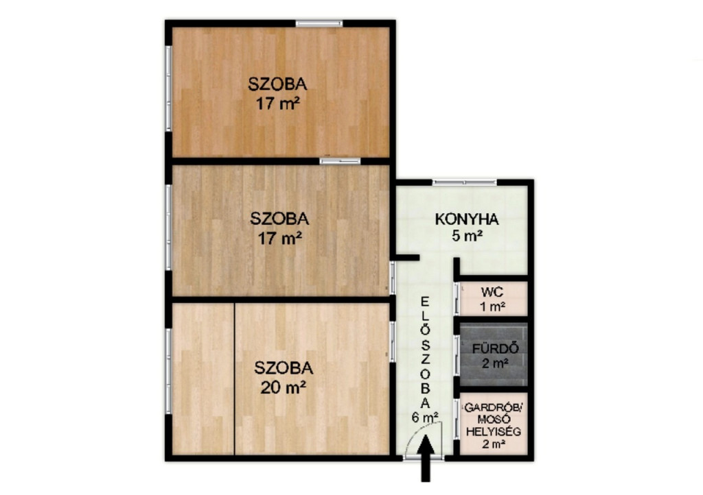 Az ingatlan eredetileg 2+1 félszobás volt, azonban a loggia beépítésének és a közlekedő megszüntetésének köszönhetően jelenleg 3 külön nyíló, teljes értékű szobával rendelkezik, így kiválóan alkalmas akár családok, akár befektetők számára is.