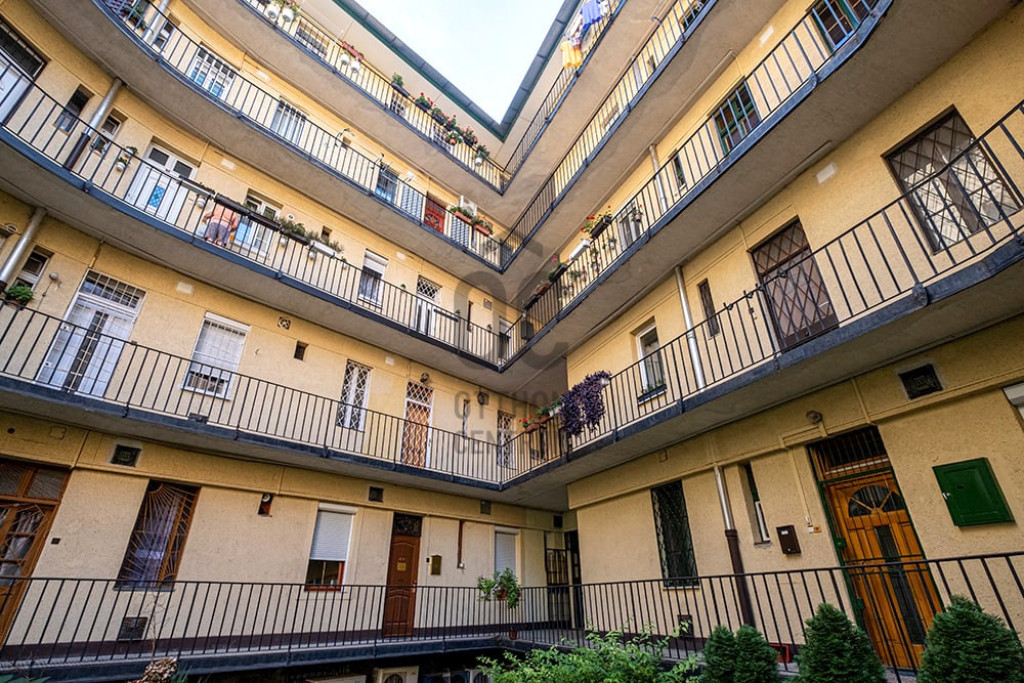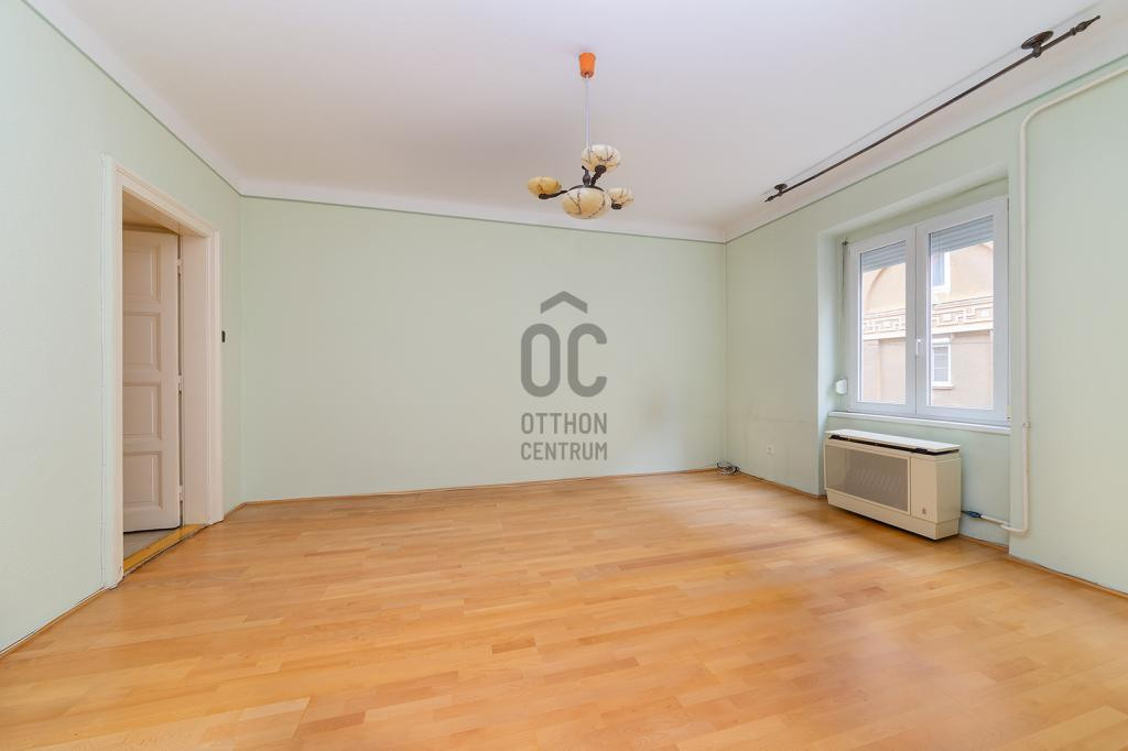 Tulajdoni lapon 2+1 szobás, a valóságban a fél szoba inkább gardrób méretű, a másik két szoba kifejezetten tágas. A lakás egy kis mellékutcára néz, ezért a kiváló közlekedés és infrastruktúra mellett kifejezetten csendes. A társasház jó állapotú, szép zöld belső udvara van, a lakóközösség kulturált. A lakás az első emeleten helyezkedik el, lift van.