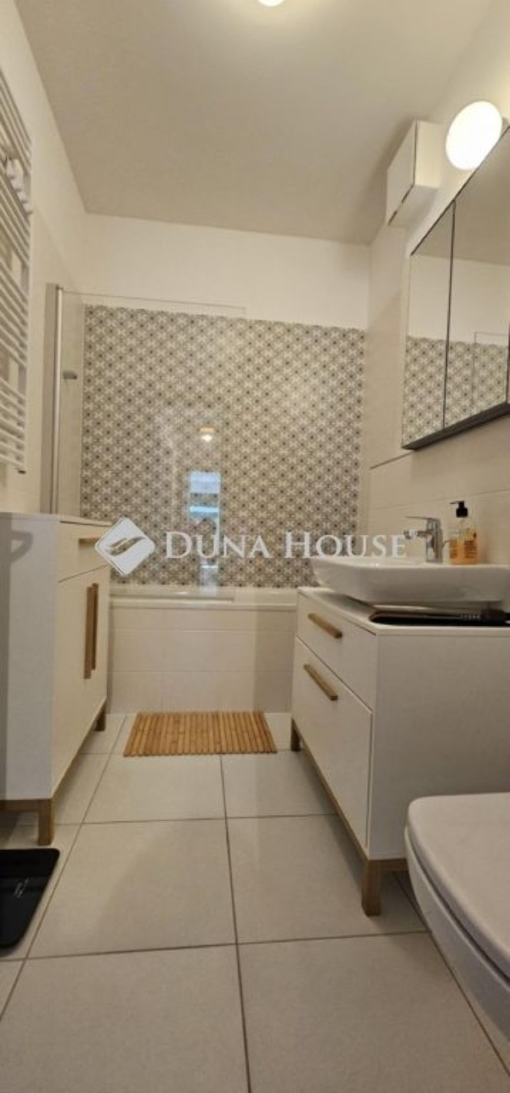 Waterfront lakóparkban, III. kerület., akadálymentesített házban, eladó újépítésű, 3 szobás lakás saját terasszal és kertrésszel, első tulajdonostól.Eladásra kínálunk egy 75 nm-es, újépítésű lakást, amelyhez 11 nm-es terasz és a teraszról nyíló 5 nm-es saját kertrész tartozik. A lakás elrendezése: tágas, amerikai konyhás nappali étkezővel (34 nm), 2 hálószoba (13 nm + 12 nm), modern fürdőszoba káddal és WC-vel, külön WC. A konyha teljesen gépesített (beépített mosogatógép, hűtő, sütő), a lakás részben bútorozva eladó (étkezőasztal, székek, kanapé, szekrény). Minden szobában redőny található (távirányítós), a mennyezeti hűtés-fűtést pedig egy klíma egészíti ki.Lokáció: az épület közvetlenül a Duna partján helyezkedik el. A belváros mindössze 12 perc alatt elérhető. Kerékpárutak vezetnek a belvárosba, Óbudai-szigetre, Szentendrére és a Római-partra.A közlekedés kiváló: busz és HÉV 8 - 10 perc sétára.A lakópark szolgáltatásai és extrái: hamarosan átadásra kerülő gyalogoshíd a Hajógyári-szigetre, kávézók, pékségek, fitneszterem, Óbuda főtere pár perc sétára, közösségi Wi-Fi, elektromosautó-töltőállomás előkészítés, mozgásérzékelős világítás, napelemes padok telefontöltési lehetőséggel.Biztonságos mélygarázs bérelhető vagy vásárolható (a lakáshoz nem tartozik).Ez a modern, világos otthon ideális választás fiatal pároknak vagy családoknak, akik szeretnének közel lenni a belvároshoz, ugyanakkor zöld, vízparti környezetben élni.Ha hitelre van szüksége a tanácsadóink díjmentesen a legjobb banki ajánlatokkal álnak rendelkezésre.Amennyiben megtekintené, várom hívását!