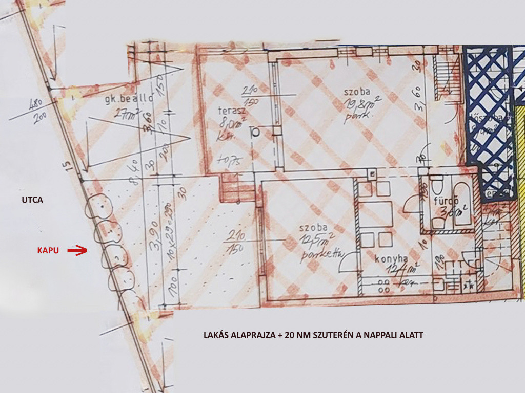 - fűtött szuterén 20 nm, itt található a kazán, radiátor, külön kis tároló és mosdó