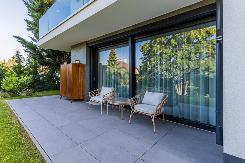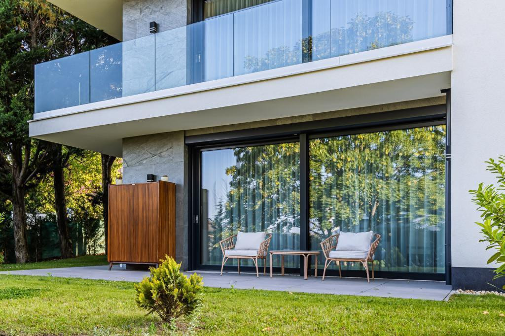 A lakás kivitelezése prémium minőségű. A fűtésről, hűtésről Daikin hőszivattyú gondoskodik, mely fal- és padlófűtést, a meleg nyári napokon pedig fal hűtést biztosít. Kiváló minőségű fa nyílászárók, a nappaliban hatalmas tolóajtók kerültek beépítésre, melyek valós összeköttetést biztosítanak a lakótér és a kert között.