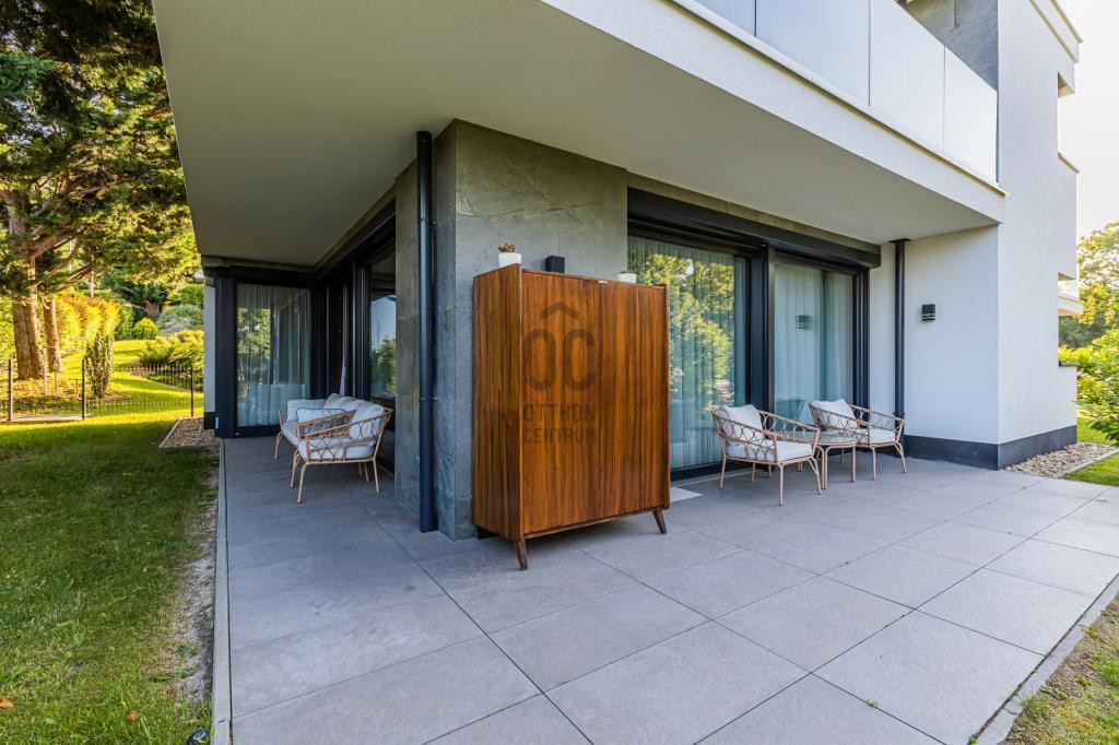 A lakáshoz egy 300 m2-es kizárólagos használatú díszkert tartozik.