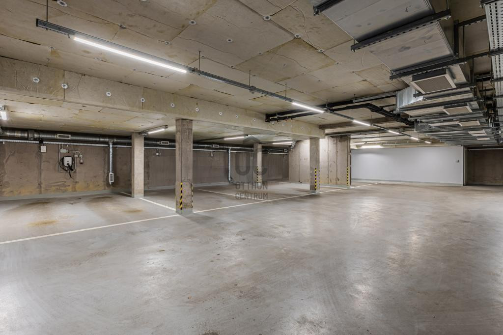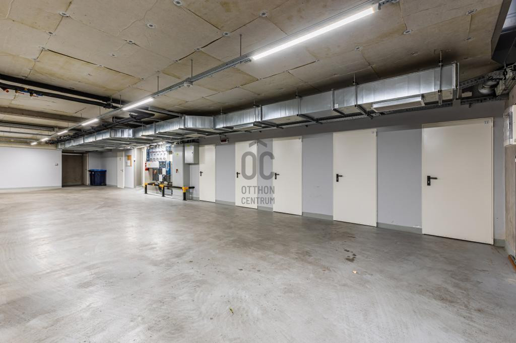 A lakáshoz tartozik egy tágas teremgarázs férőhely, melyhez fűthető lehajtó vezet, valamint szintén a garázs szinten egy 6 m2-es tároló is. A garázs és a tároló kötelezően megvásárolandó. A garázs ára 10 millió, a tároló ára 5 millió forint.